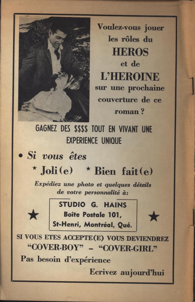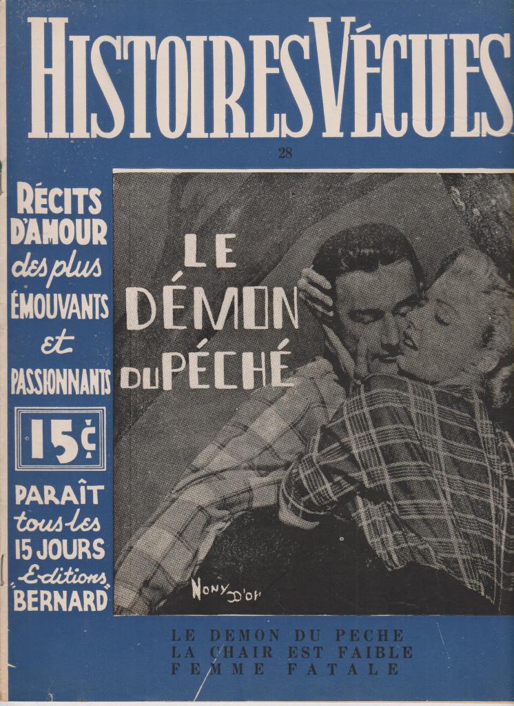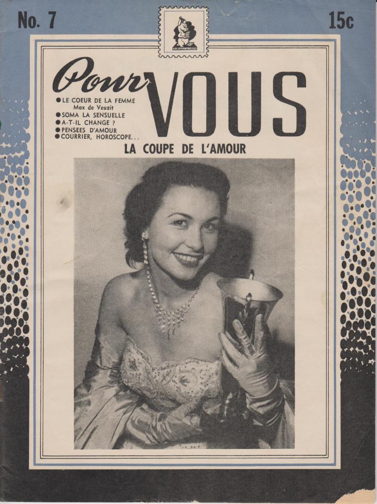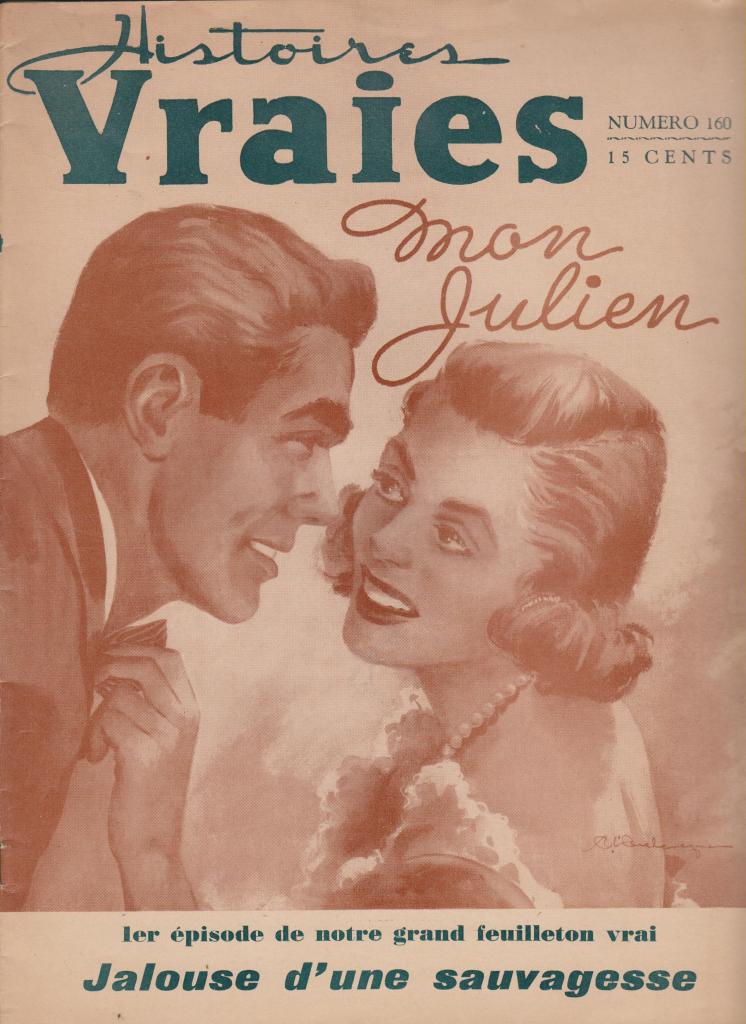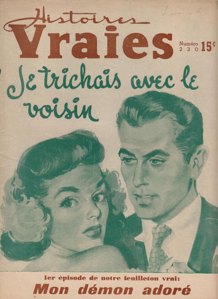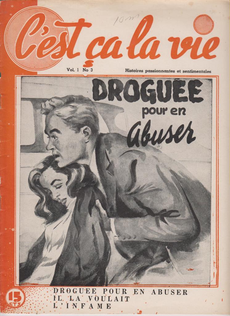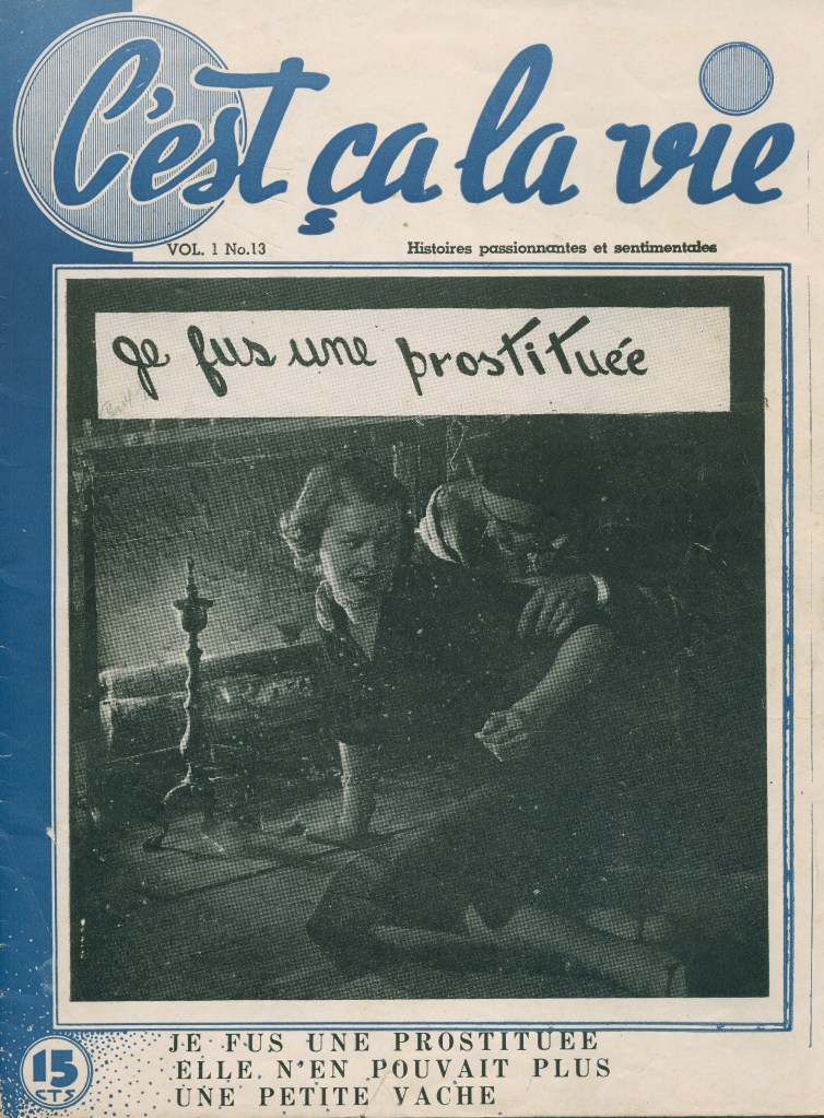 These magazines were part of the Québécois traditions of the confession and romance magazine, typically full of fictional or semi-fictional stories recounting problems of love and conjugal life. The examples shown here are all from the post- World War II period, though precise dates are not given, presumably to encourage their sale over long periods of time. Any further information on these titles would be welcome.