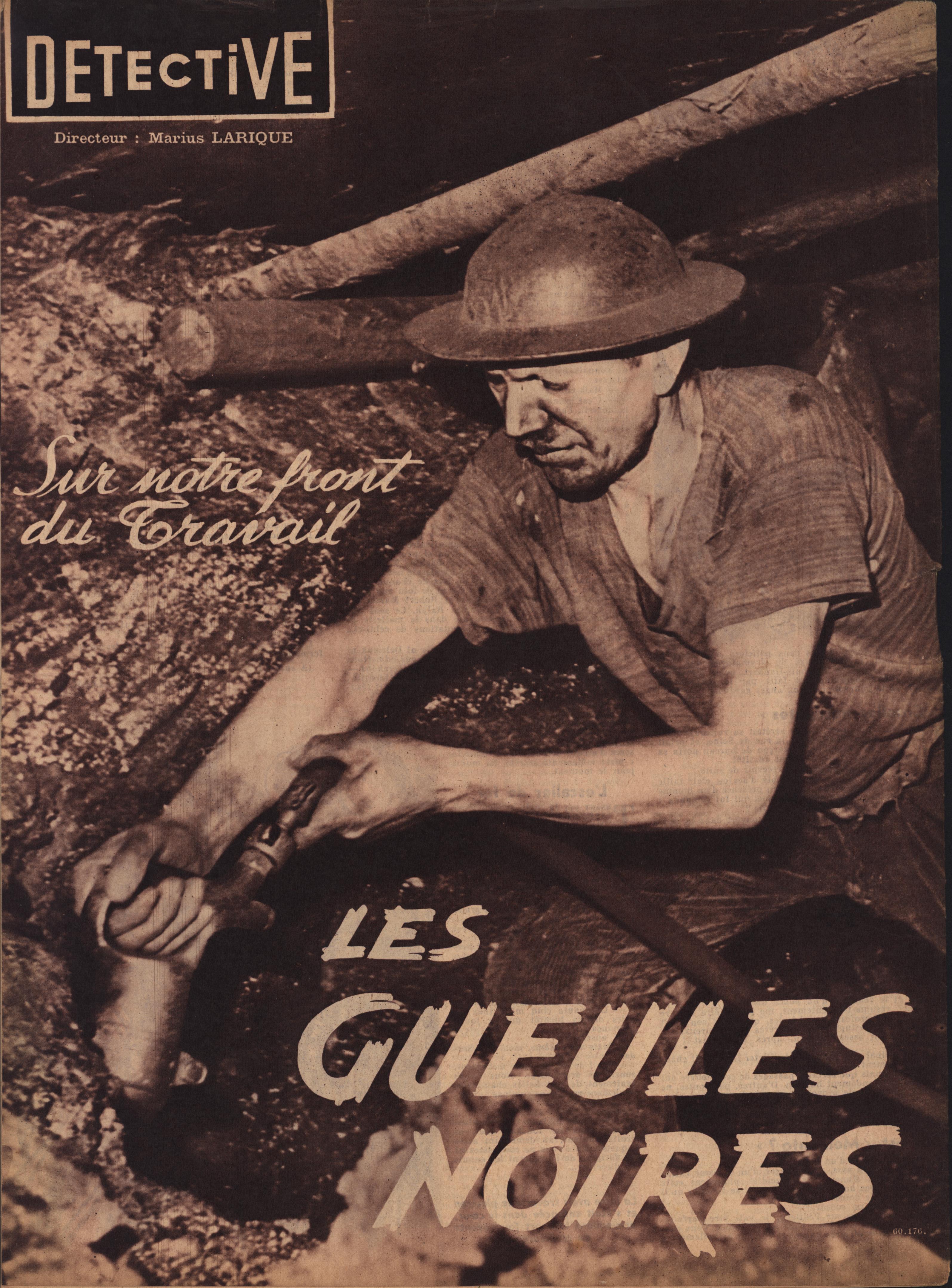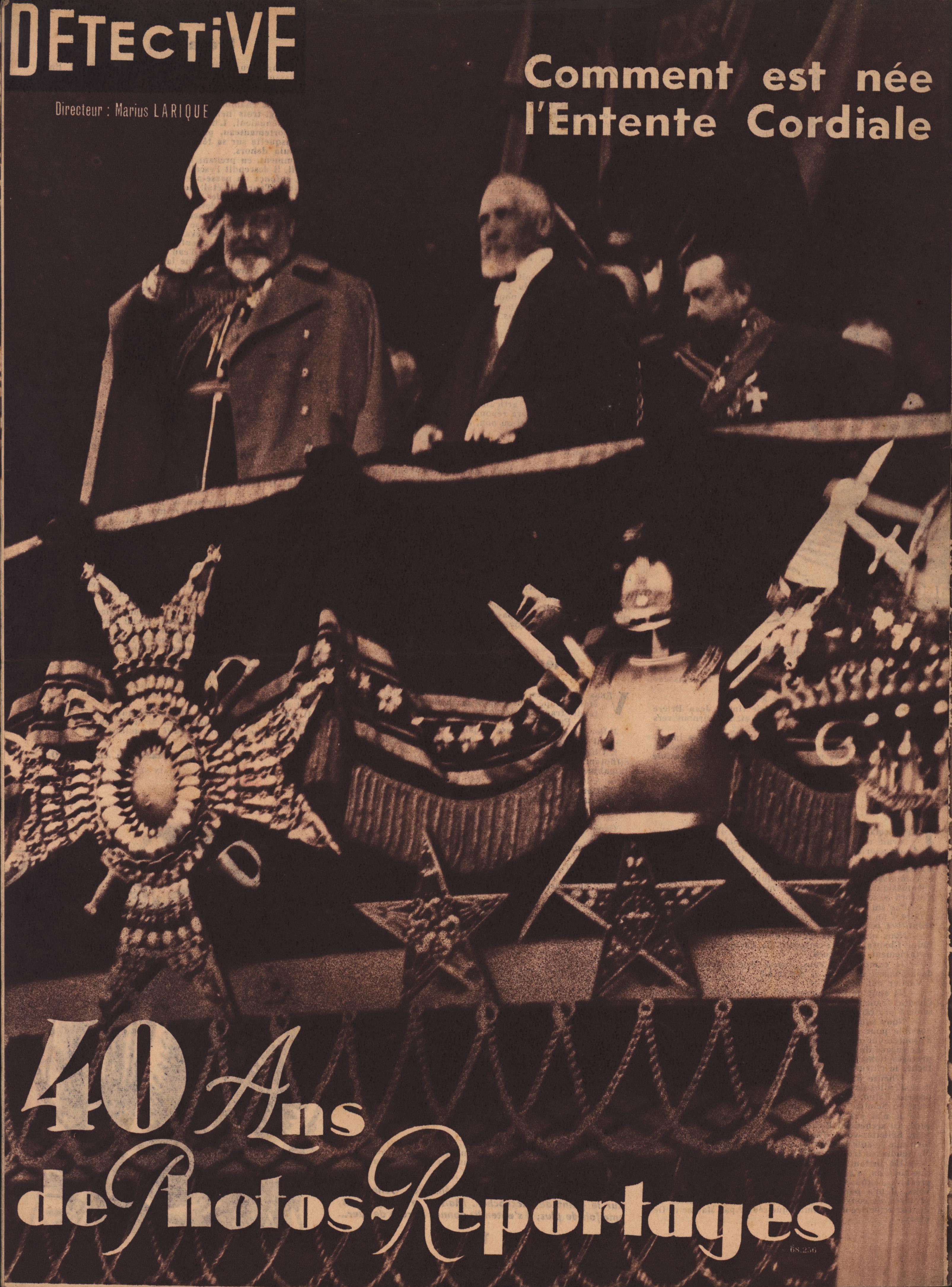Détective magazine ceased publication in 1940, as a result of the war and subsequent German invasion of France. The issues shown here are among the few published in 1940. In them, we see a turn away from crime and towards coverage of patriotic figures and moments from the French past, or idyllic portraits of French workers and peasants.