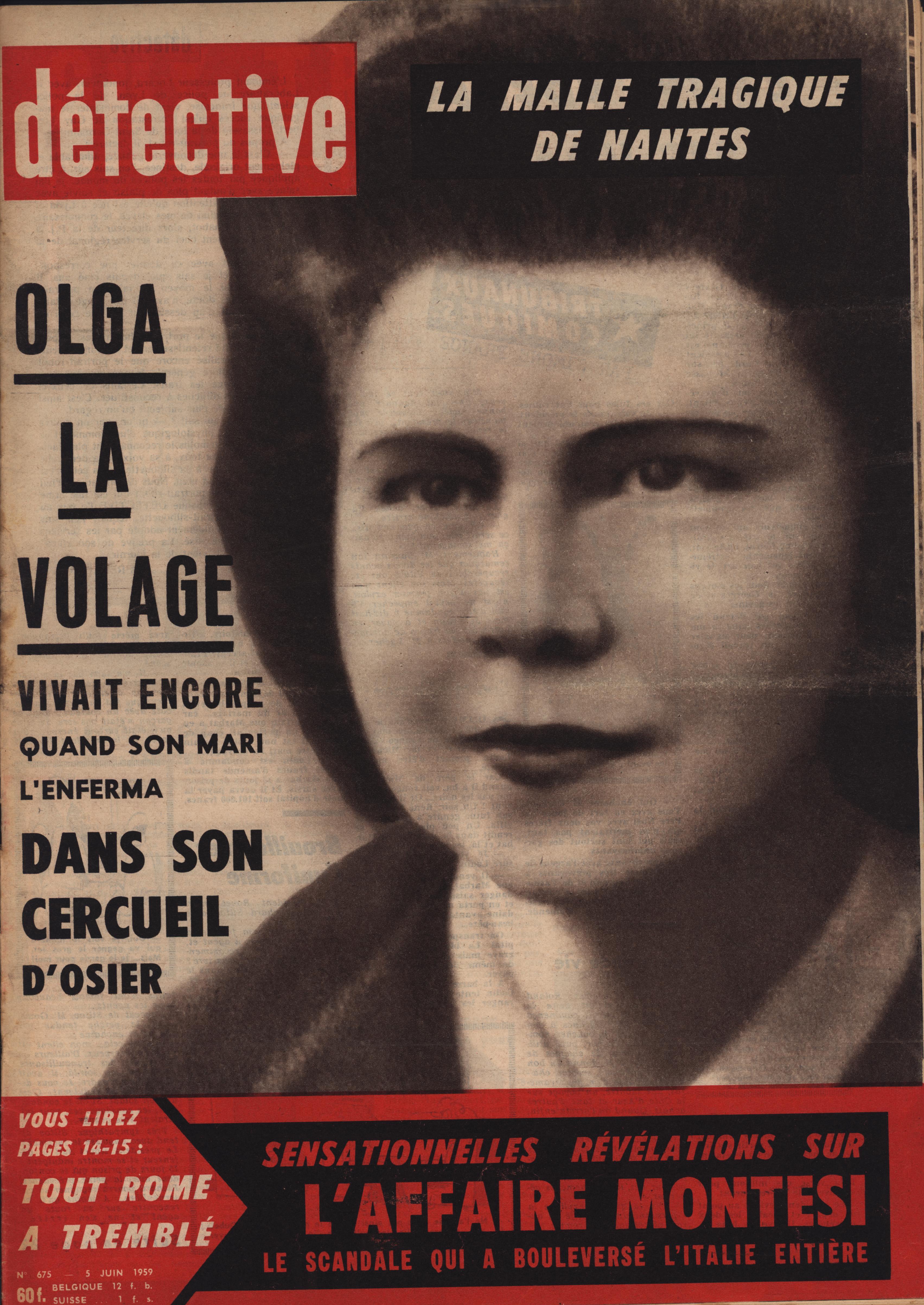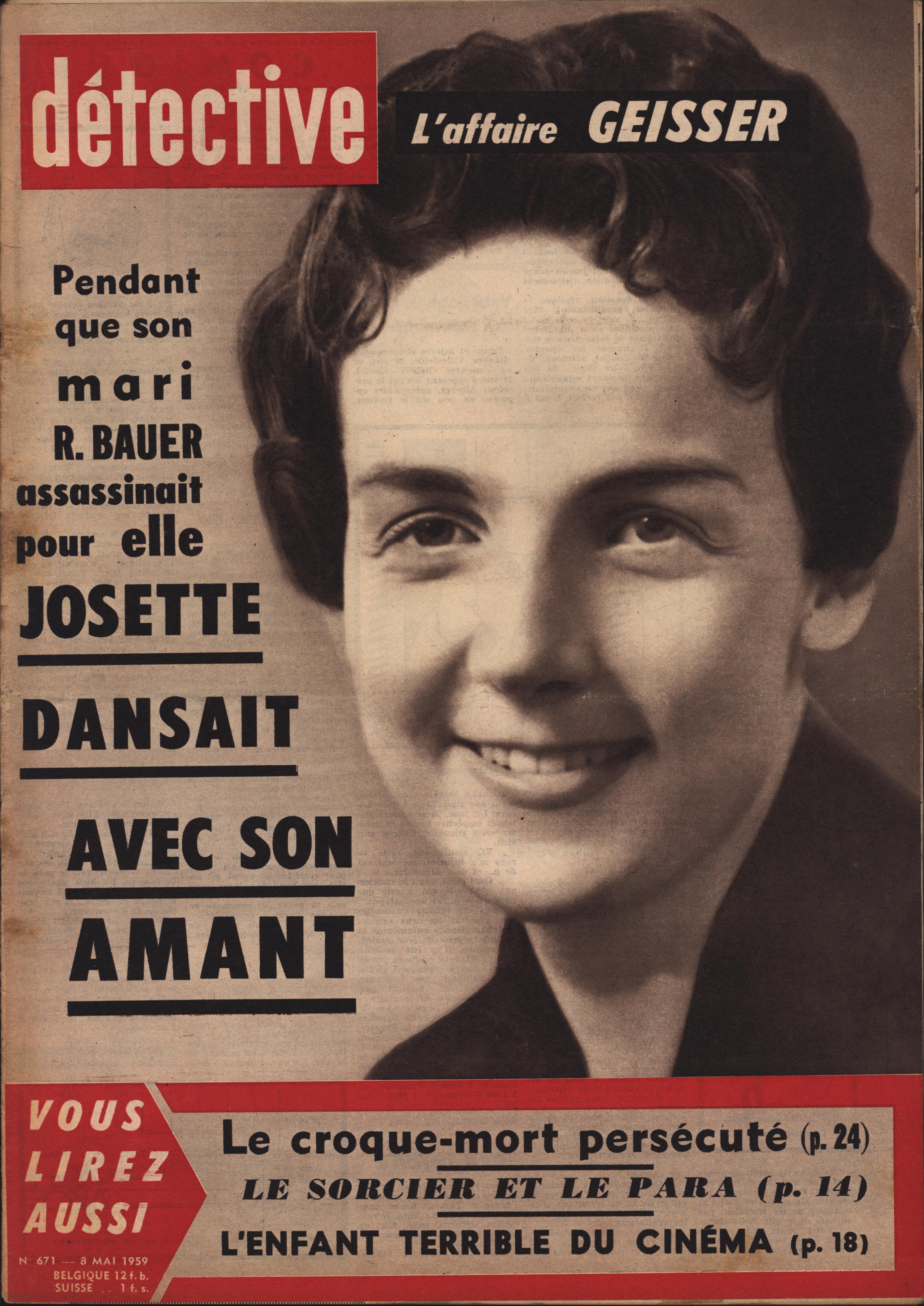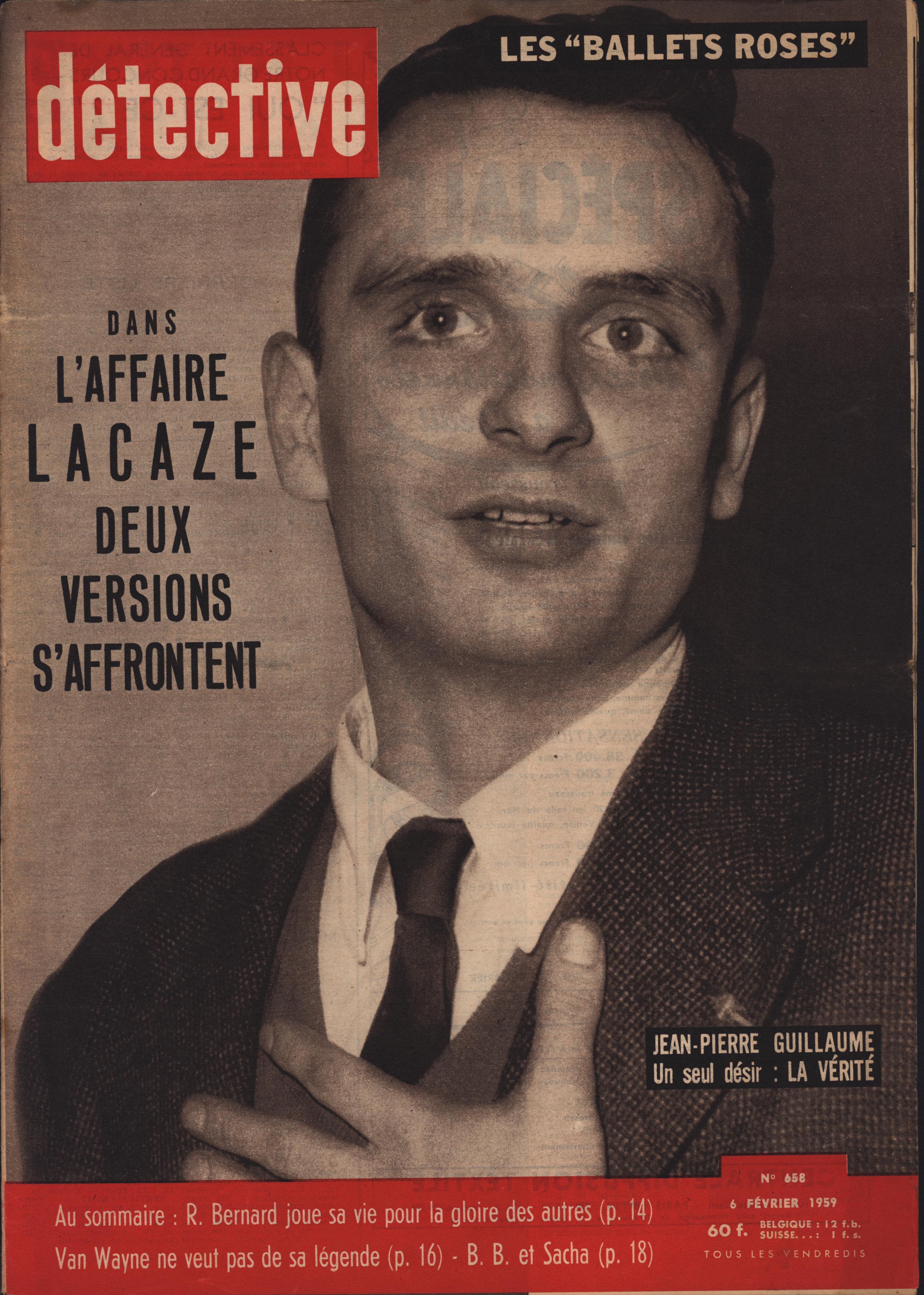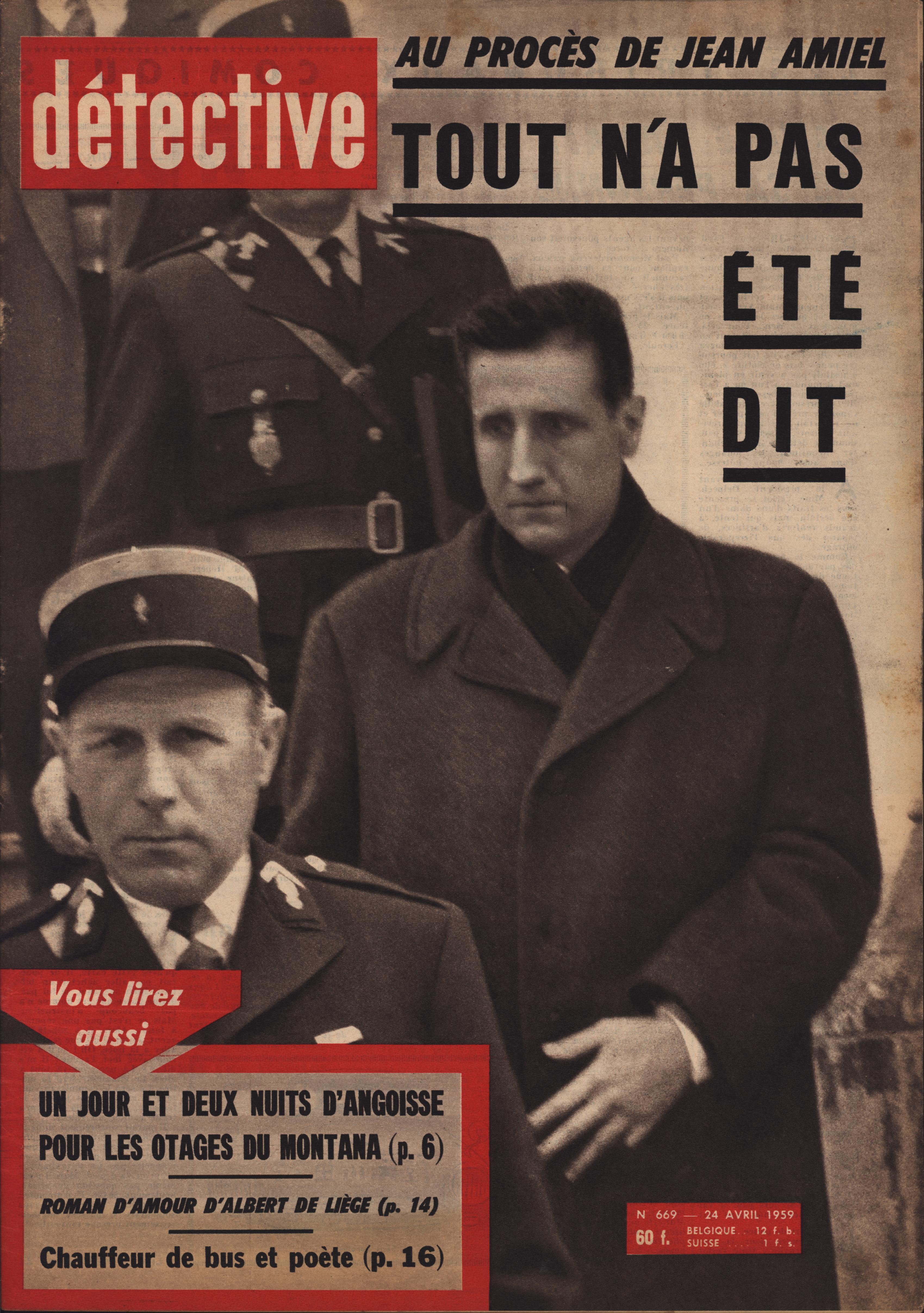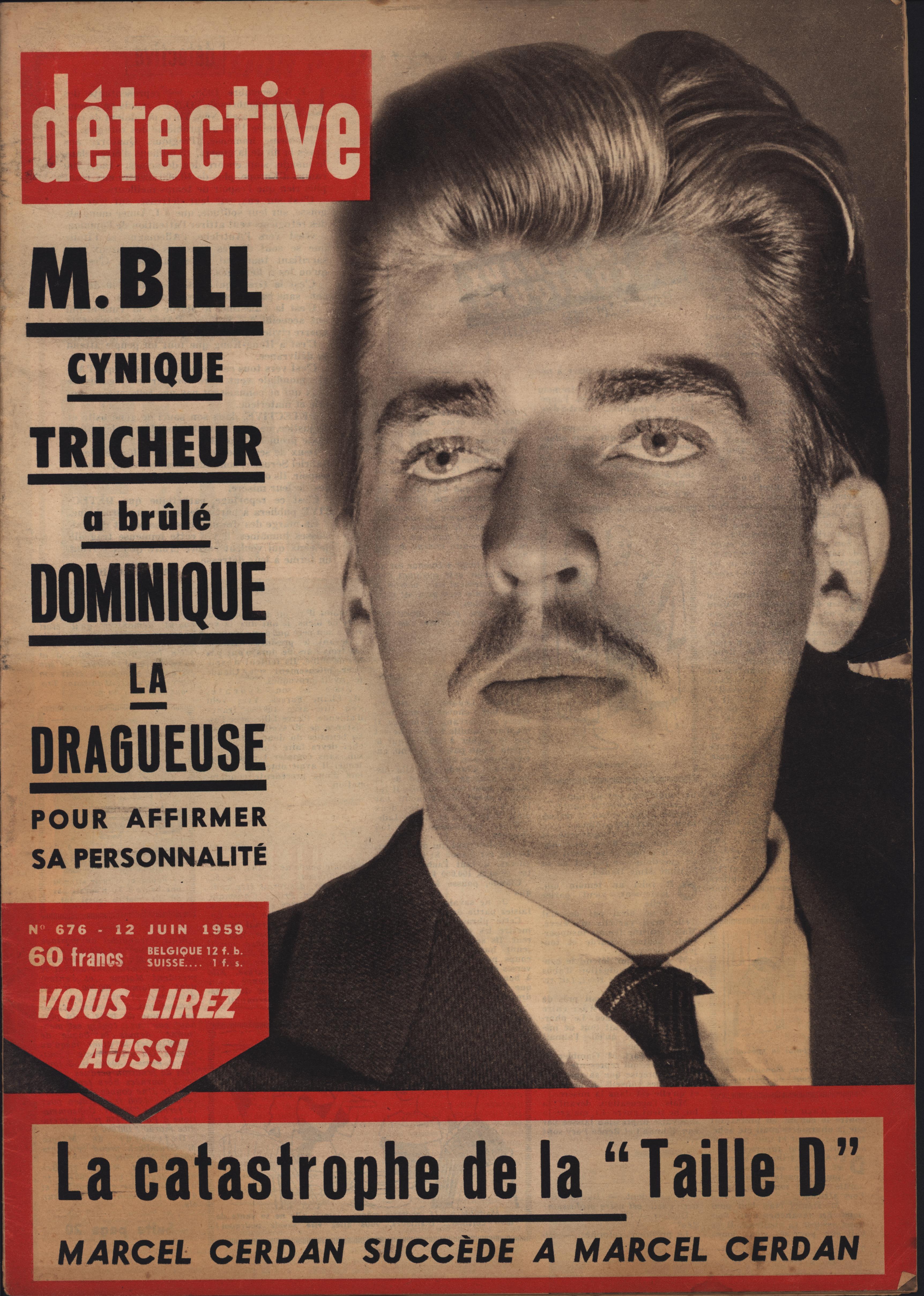 In 1958, Qui? Detective returned to its original title, Détective. By the end of that year, a fresh new design brought banners with red backgrounds to its cover and other evidence of a more modern look. In these issues from 1959, several headlines make reference to stories inside — this represented a change from most earlier issues of the magazine, which rarely had more than one title on their covers. With this redesign, Détective edged towards the emphasis on entertainment celebrities and sex crimes for which it would be notorious in later decades.