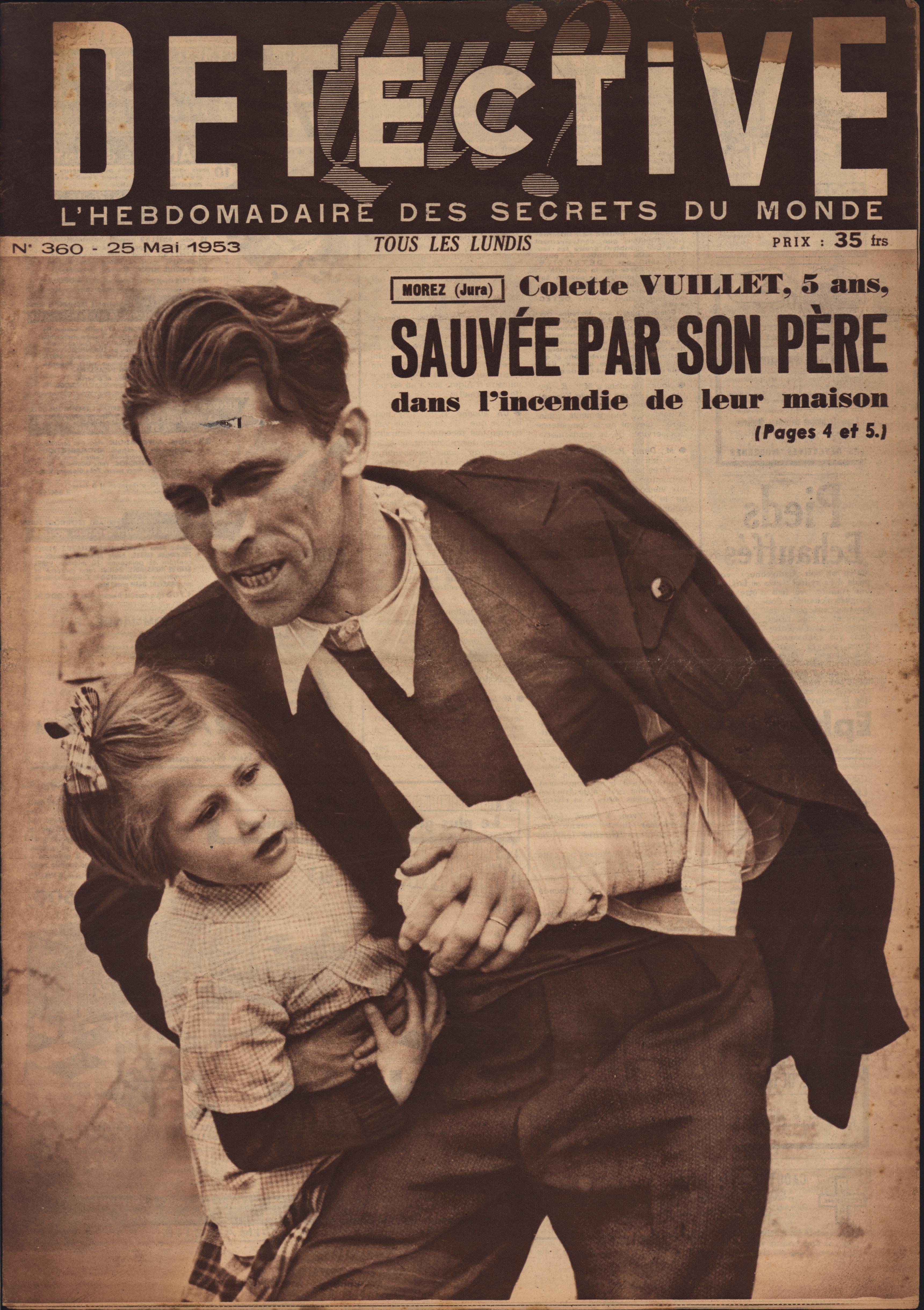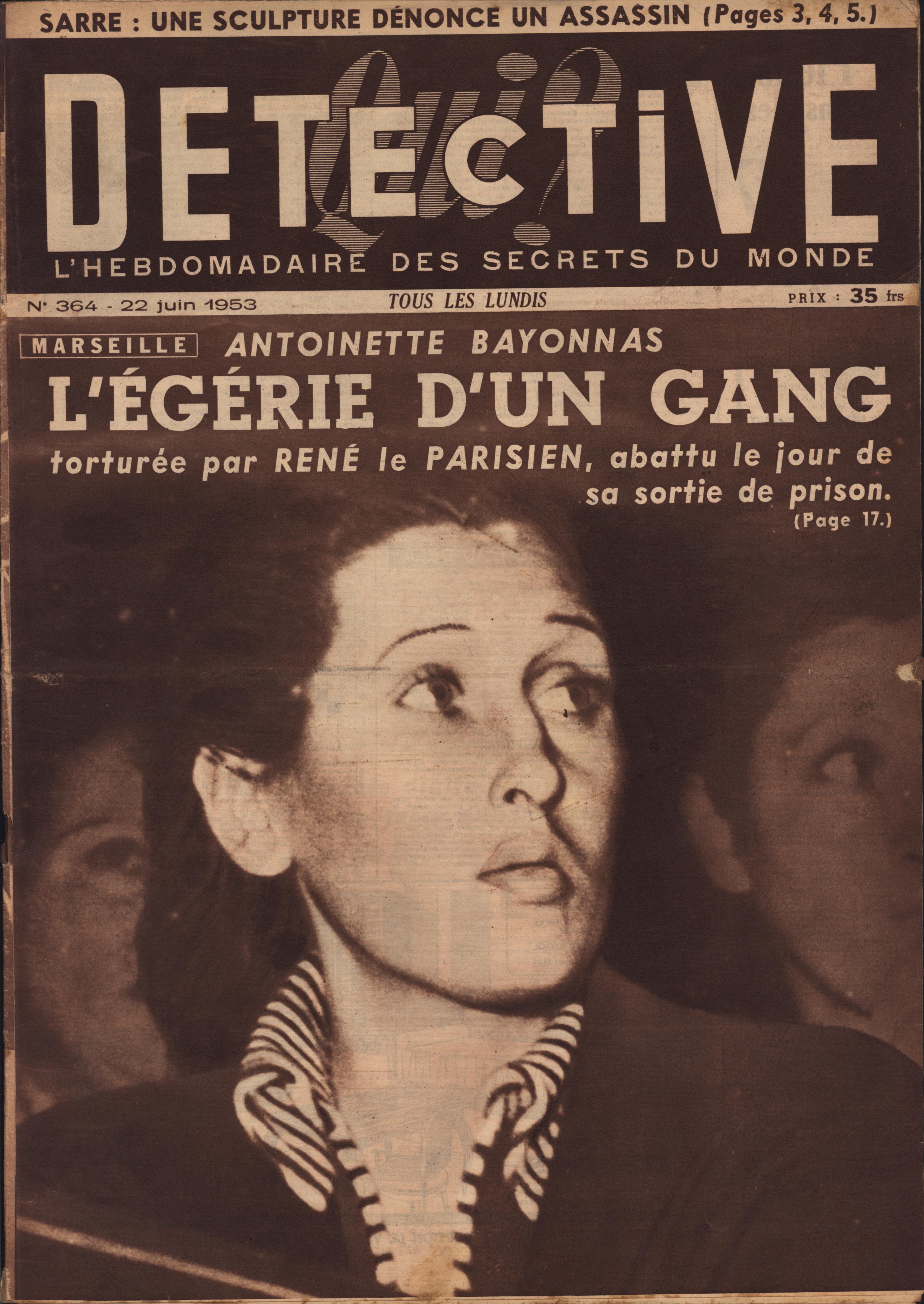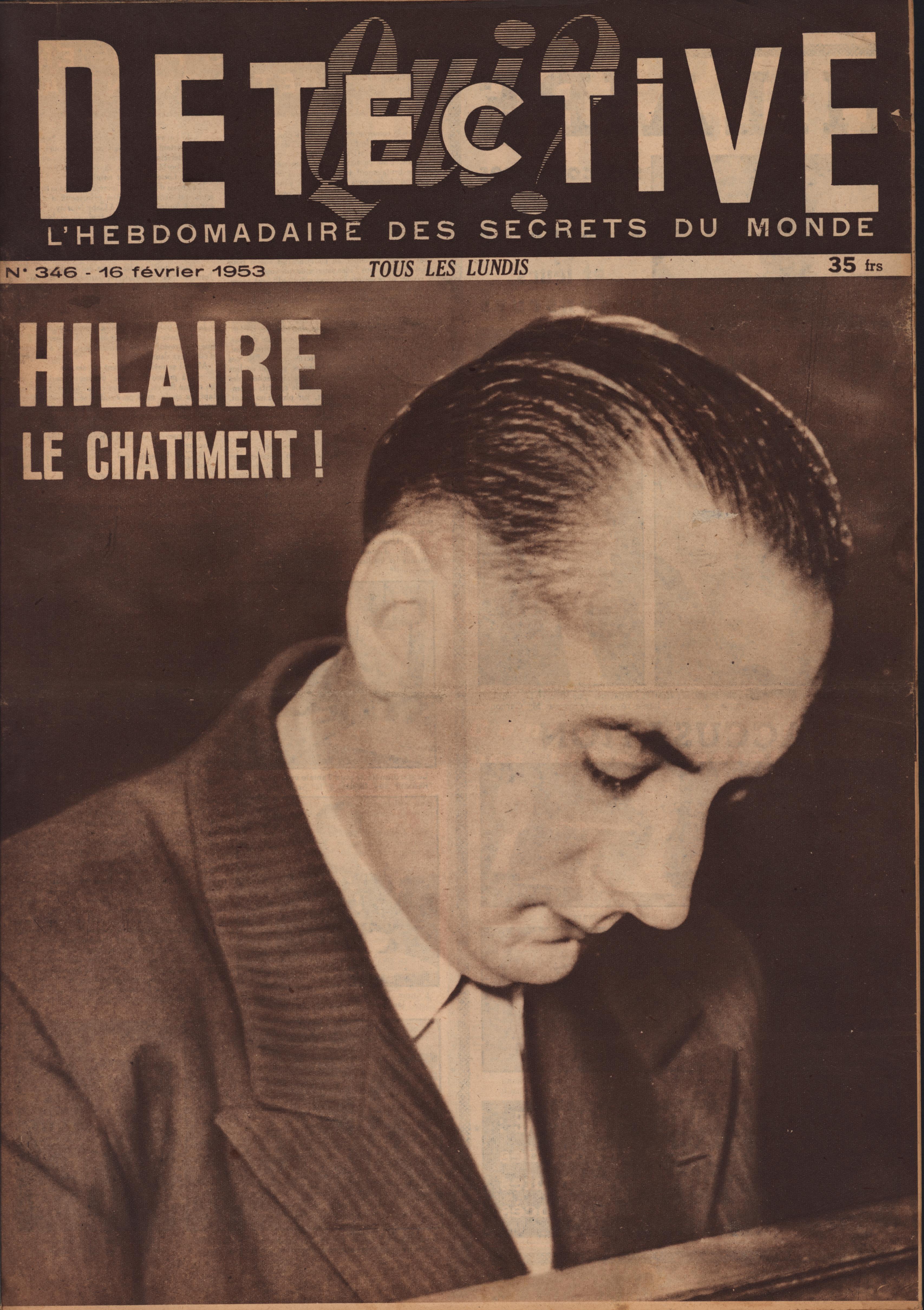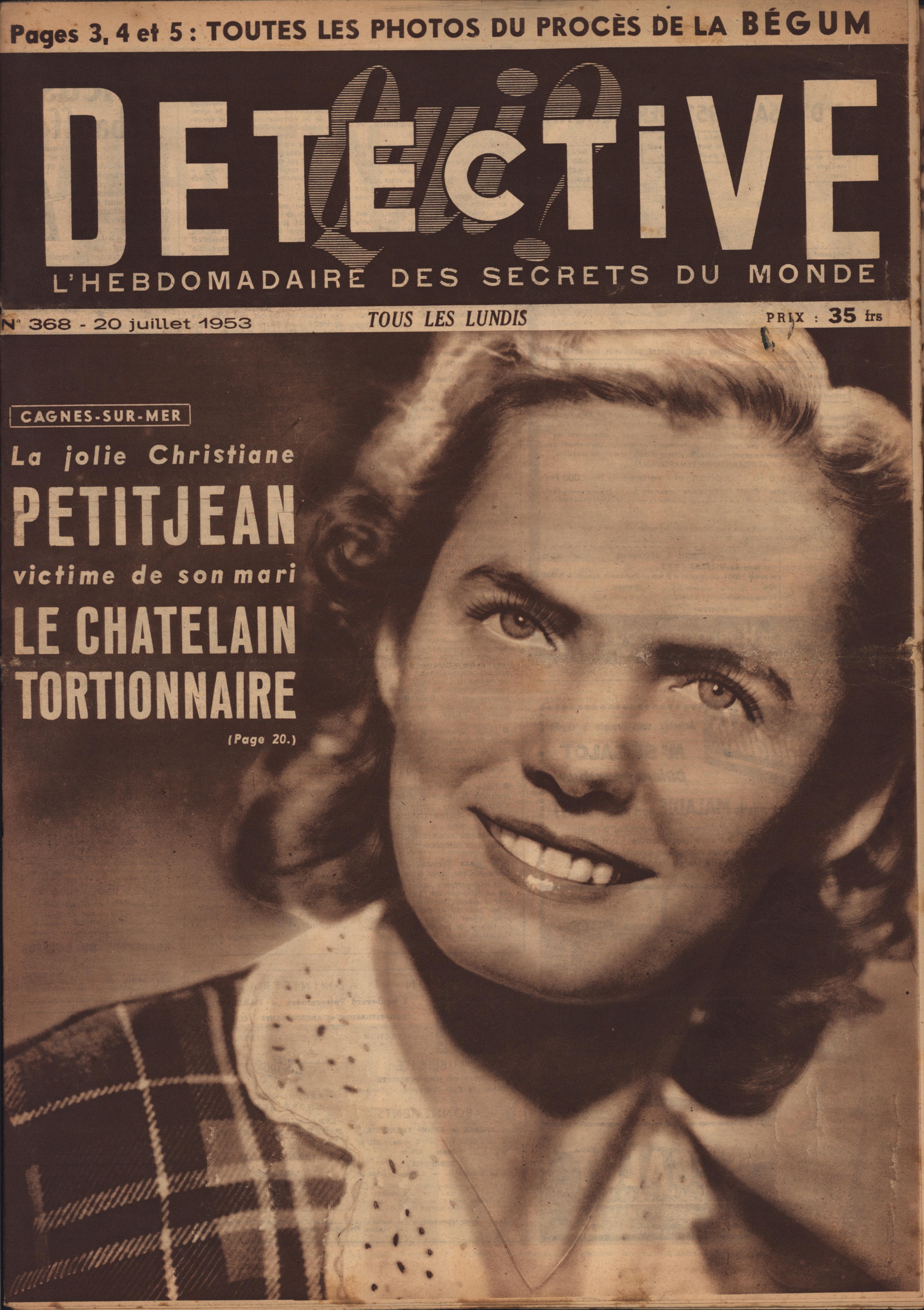 In 1946, rights to the title Détective were sold to the French Beyler group, who published it as Qui? Détective until 1958. In this and other galleries, we will present covers of the various incarnations of Détective as it changed title and style several times from the end of World War II until the present day. This gallery features issues of Qui? Détective from 1953, when it combined human interest stories, coverage of various royal families, articles on sport and, of course, reports on crimes of all kinds. We have also included a one-page report from the March 2nd issue on the appeal for a pardon on the part of Violette Nozière, convicted of murder in the 1930s in one of the most high-profile cases in French history.