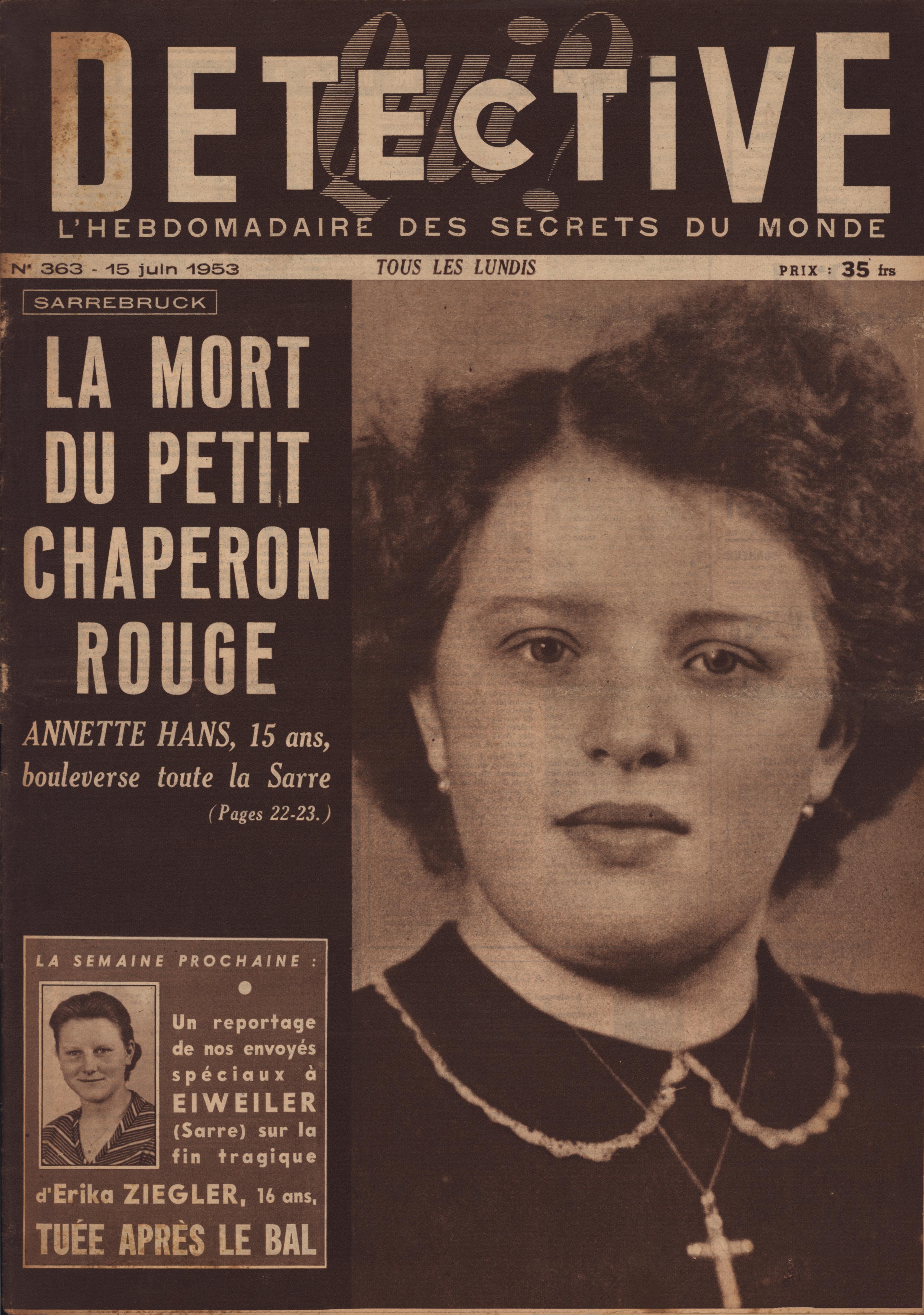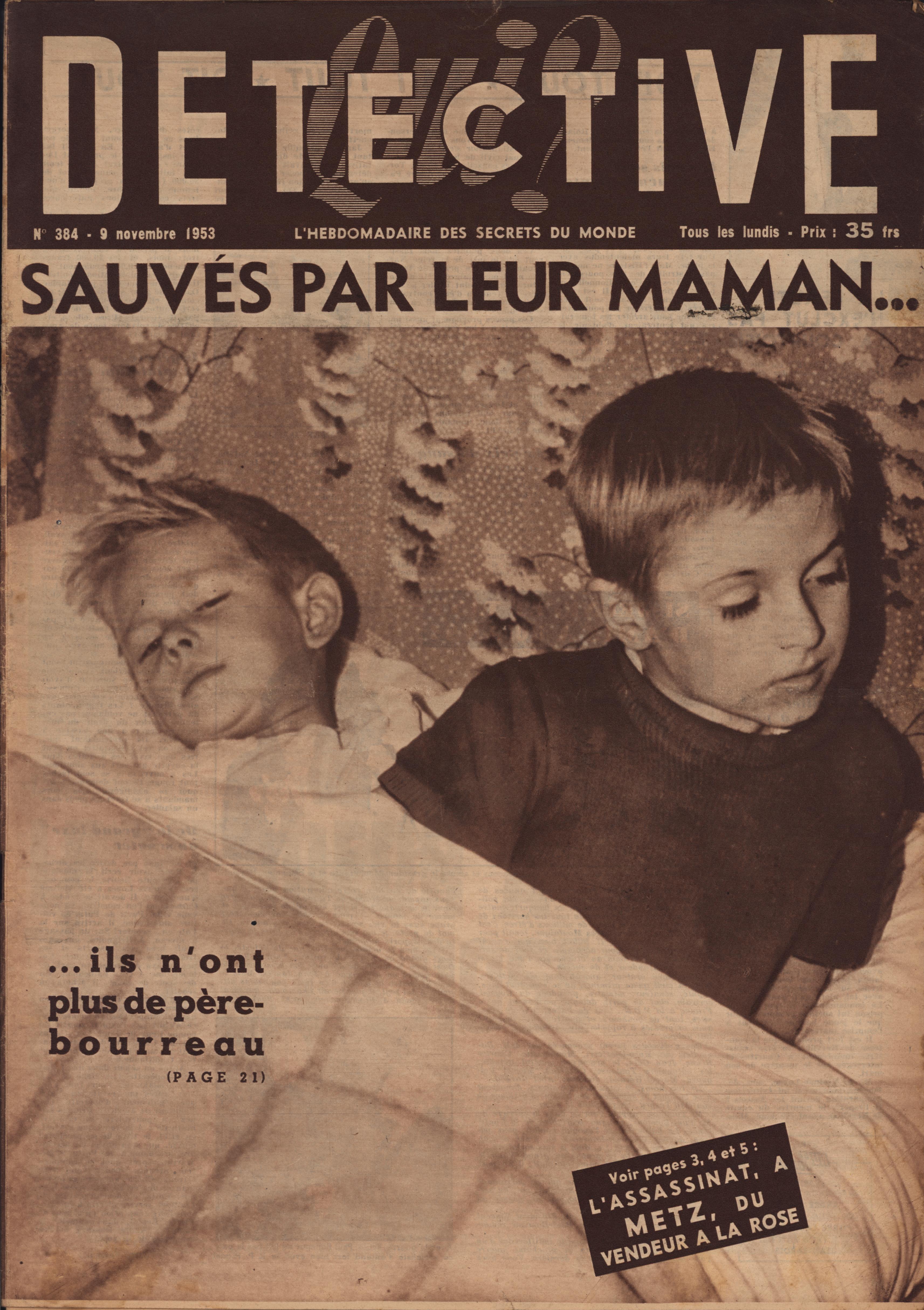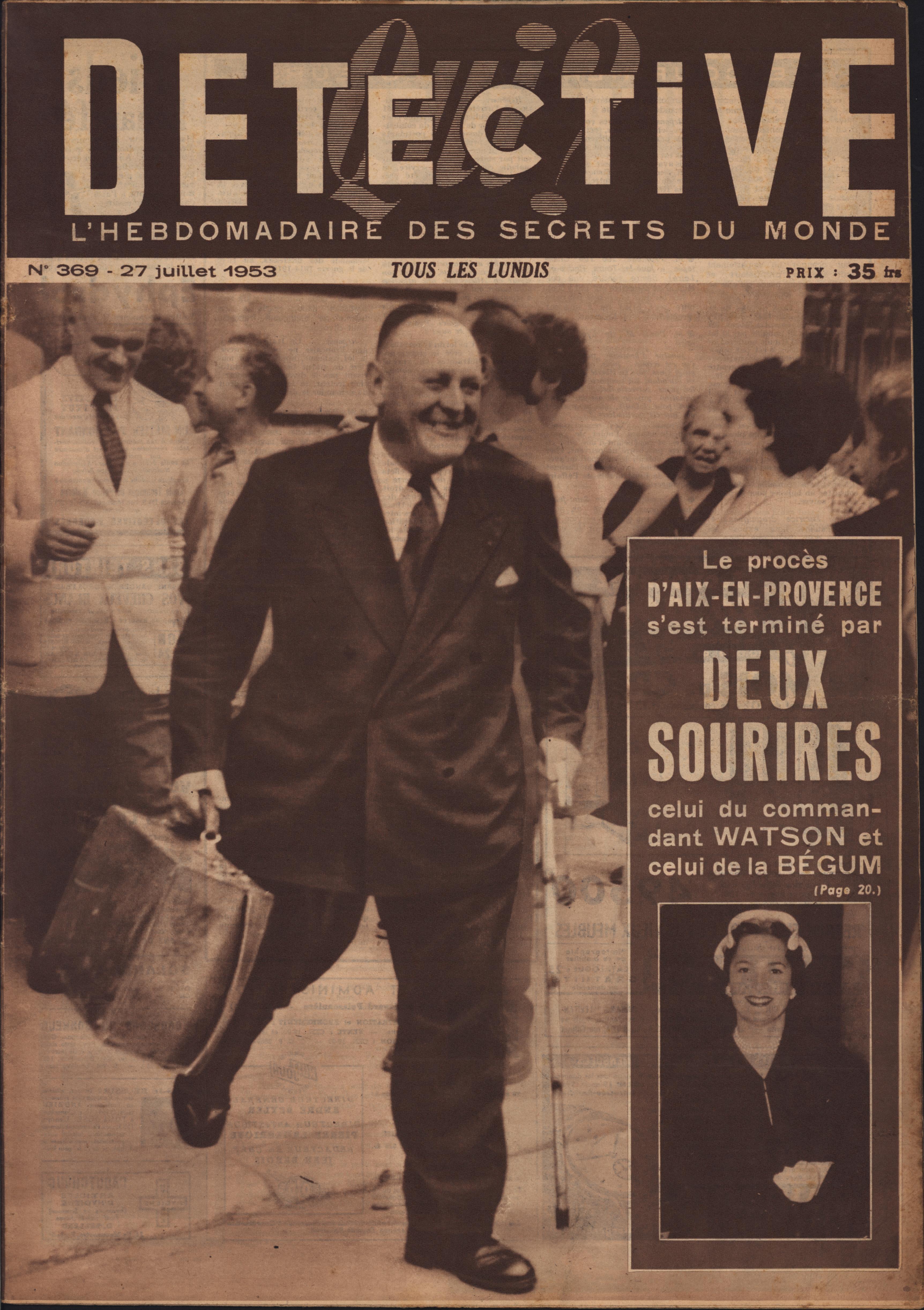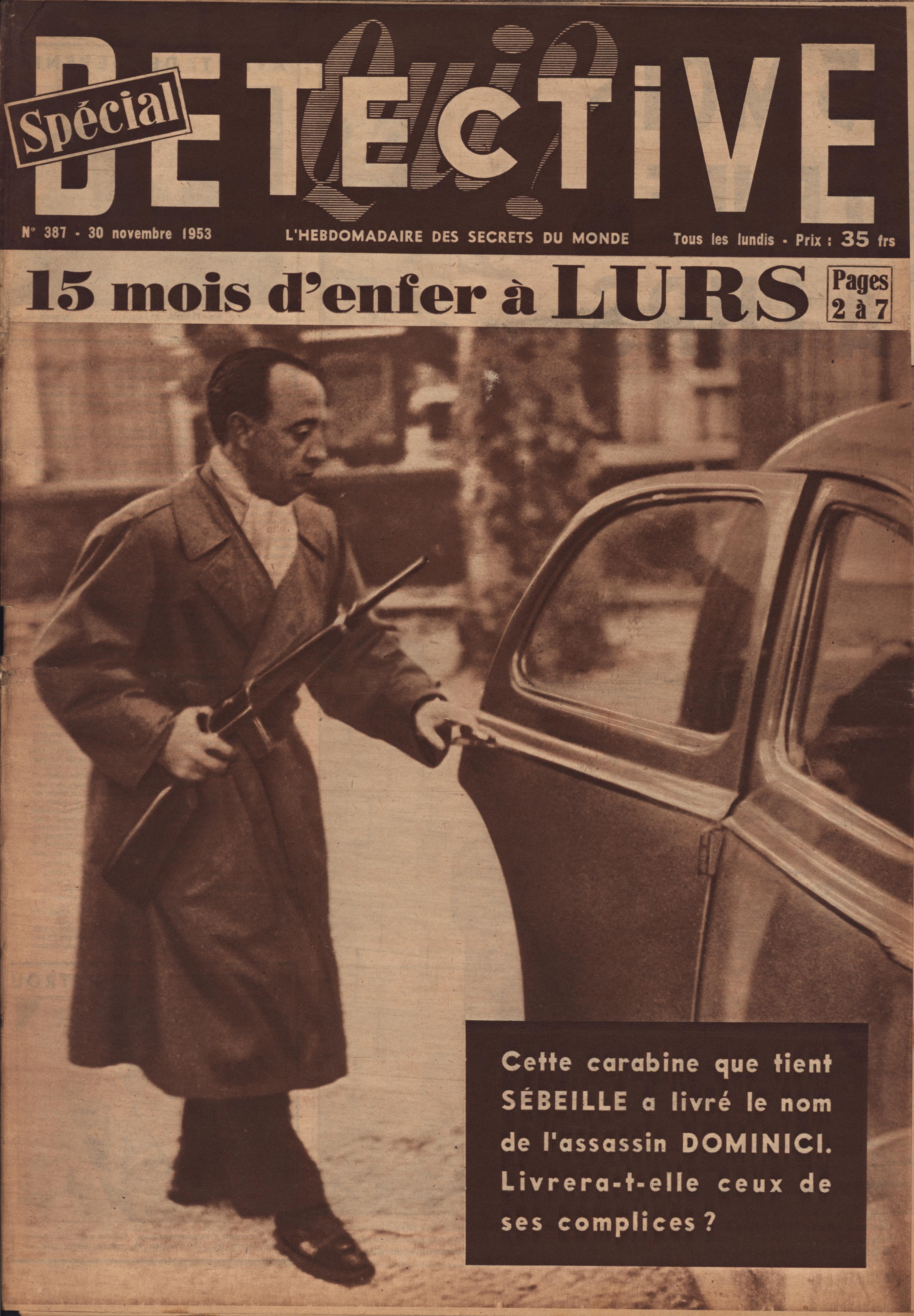 In 1946, rights to the title Détective were sold to the French Beyler group, who published it as Qui? Détective until 1958. In this and other galleries, we will present covers of the various incarnations of Détective as it changed title and style several times from the end of World War II until the present day. This gallery features issues of Qui? Détective from 1953, when it combined human interest stories, coverage of various royal families, articles on sport and, of course, reports on crimes of all kinds. We have also included a one-page report from the March 2nd issue on the appeal for a pardon on the part of Violette Nozière, convicted of murder in the 1930s in one of the most high-profile cases in French history.