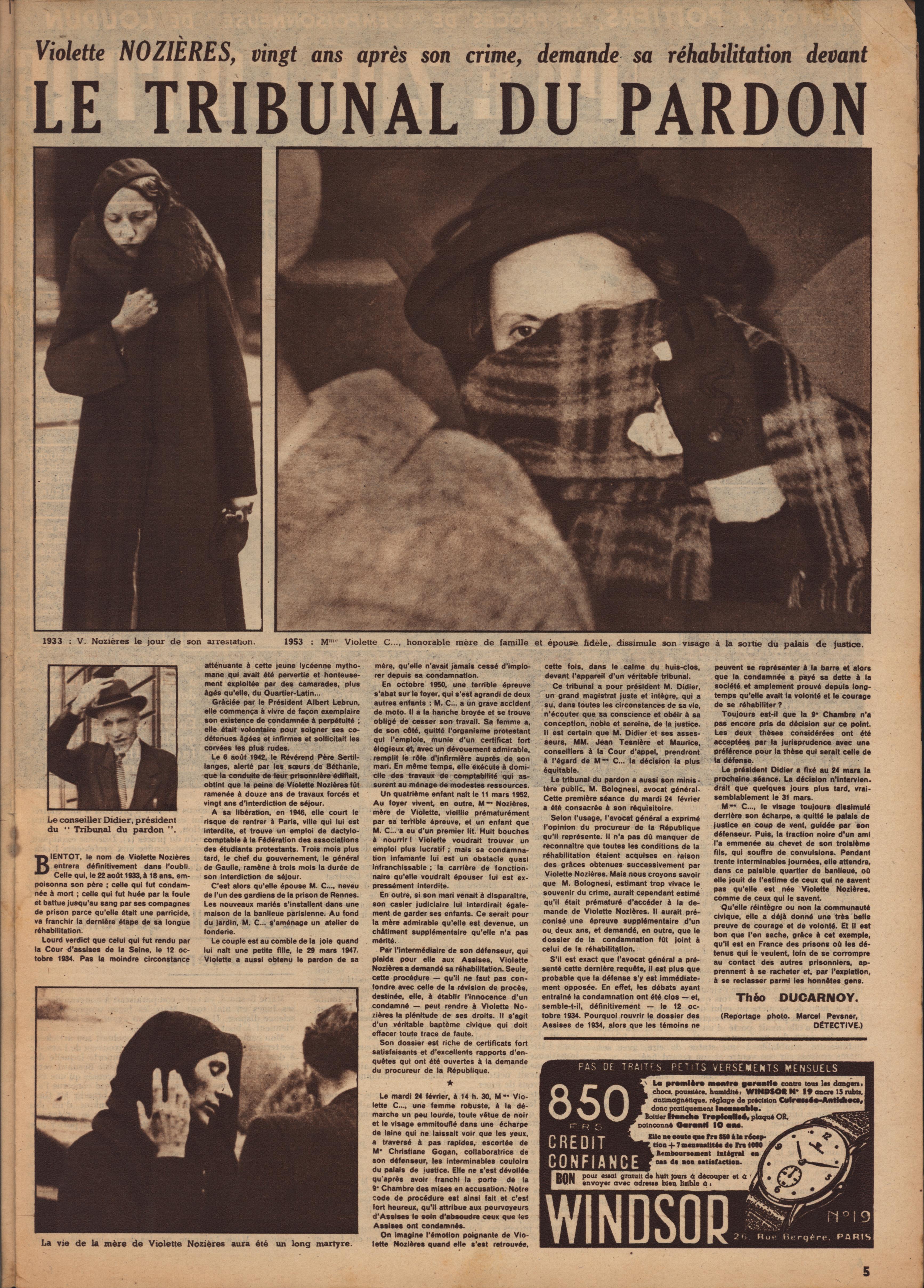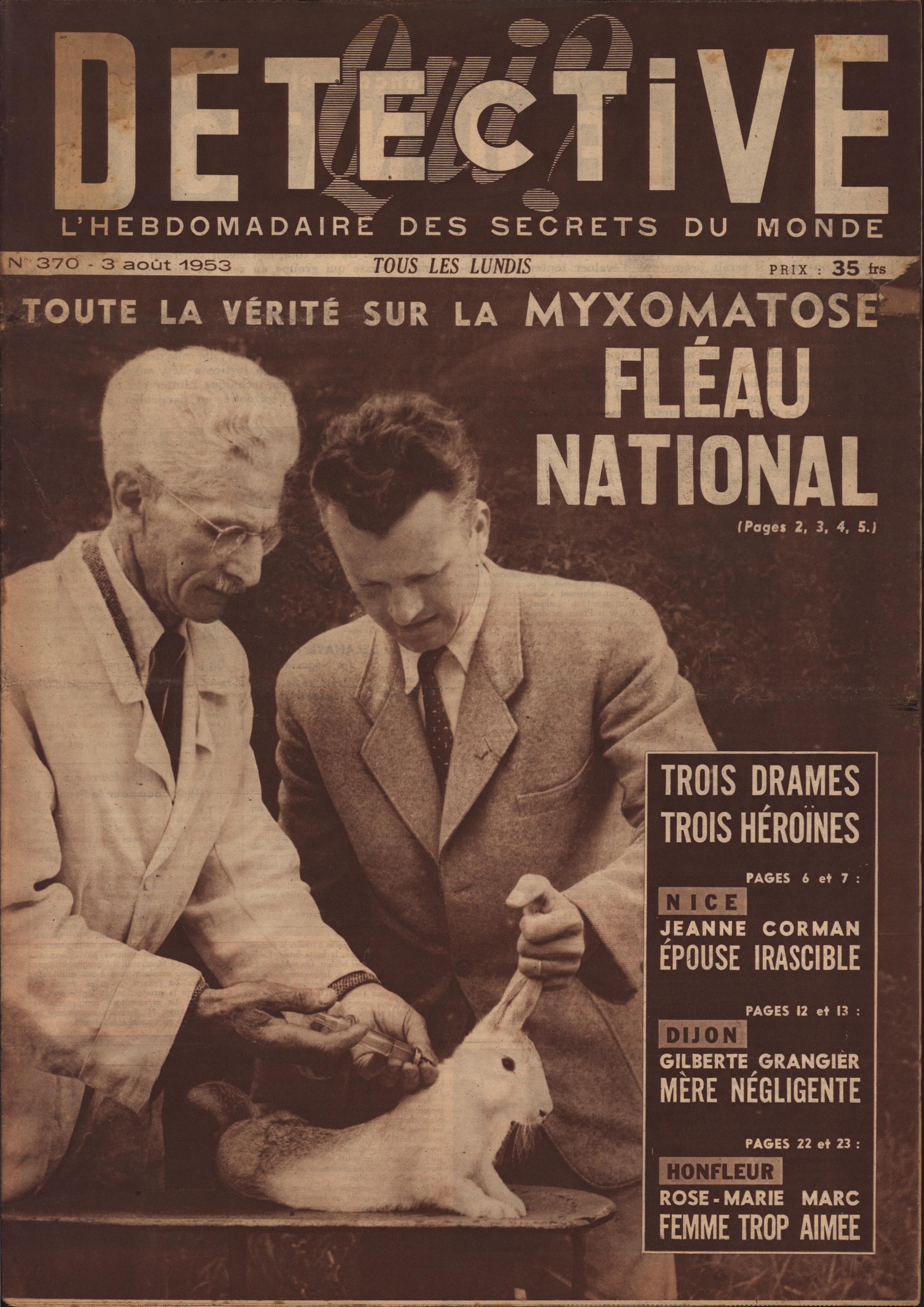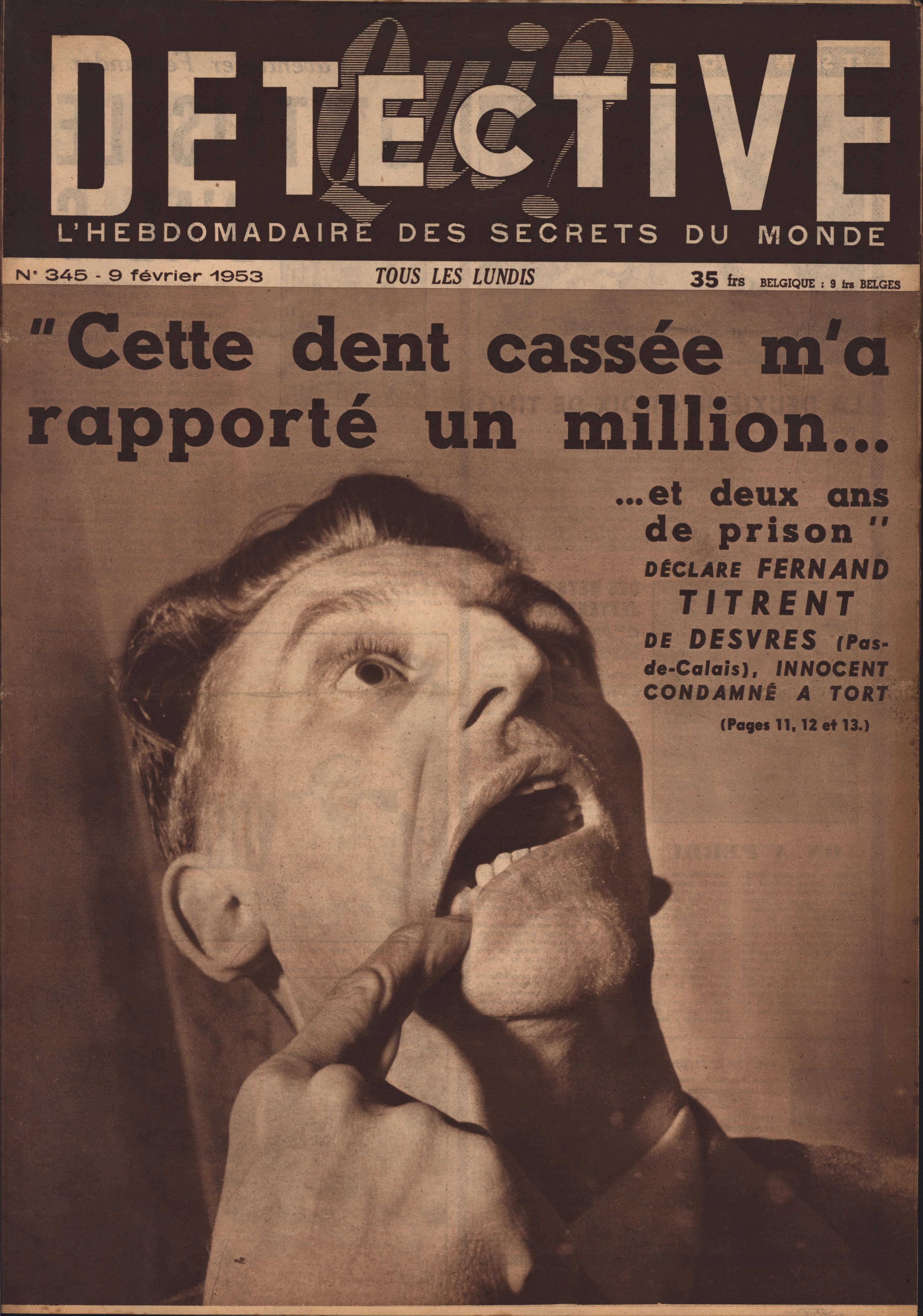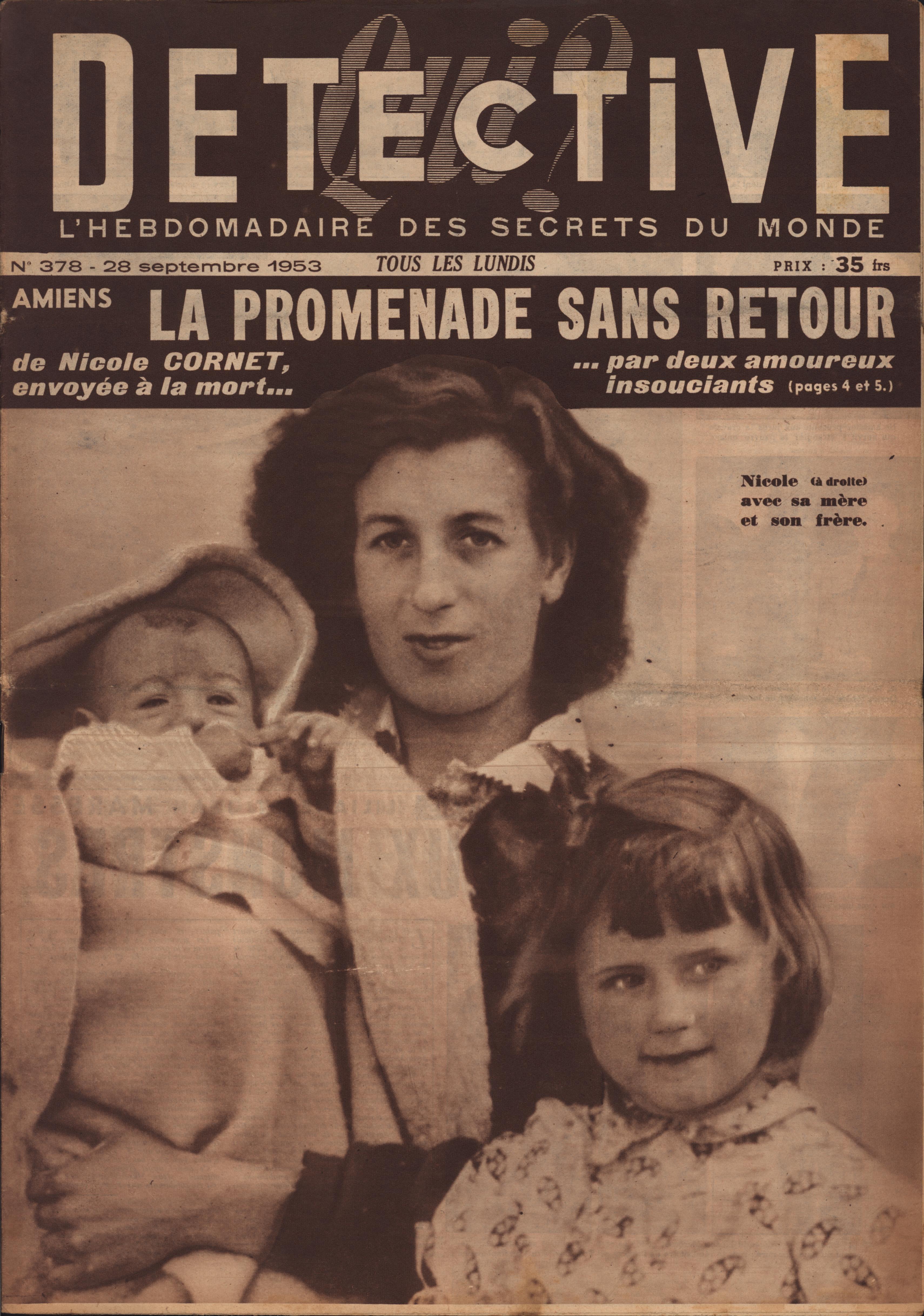 In 1946, rights to the title Détective were sold to the French Beyler group, who published it as Qui? Détective until 1958. In this and other galleries, we will present covers of the various incarnations of Détective as it changed title and style several times from the end of World War II until the present day. This gallery features issues of Qui? Détective from 1953, when it combined human interest stories, coverage of various royal families, articles on sport and, of course, reports on crimes of all kinds. We have also included a one-page report from the March 2nd issue on the appeal for a pardon on the part of Violette Nozière, convicted of murder in the 1930s in one of the most high-profile cases in French history.