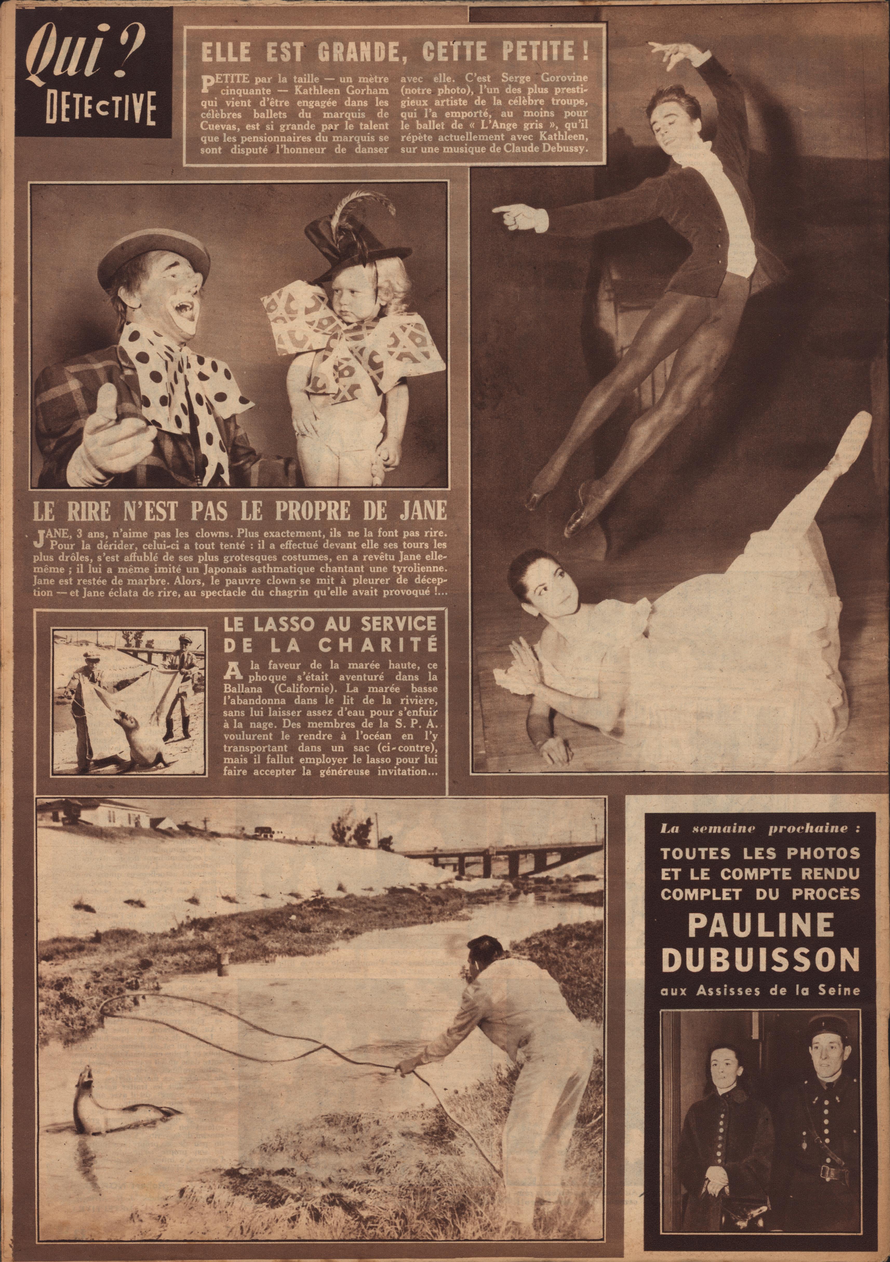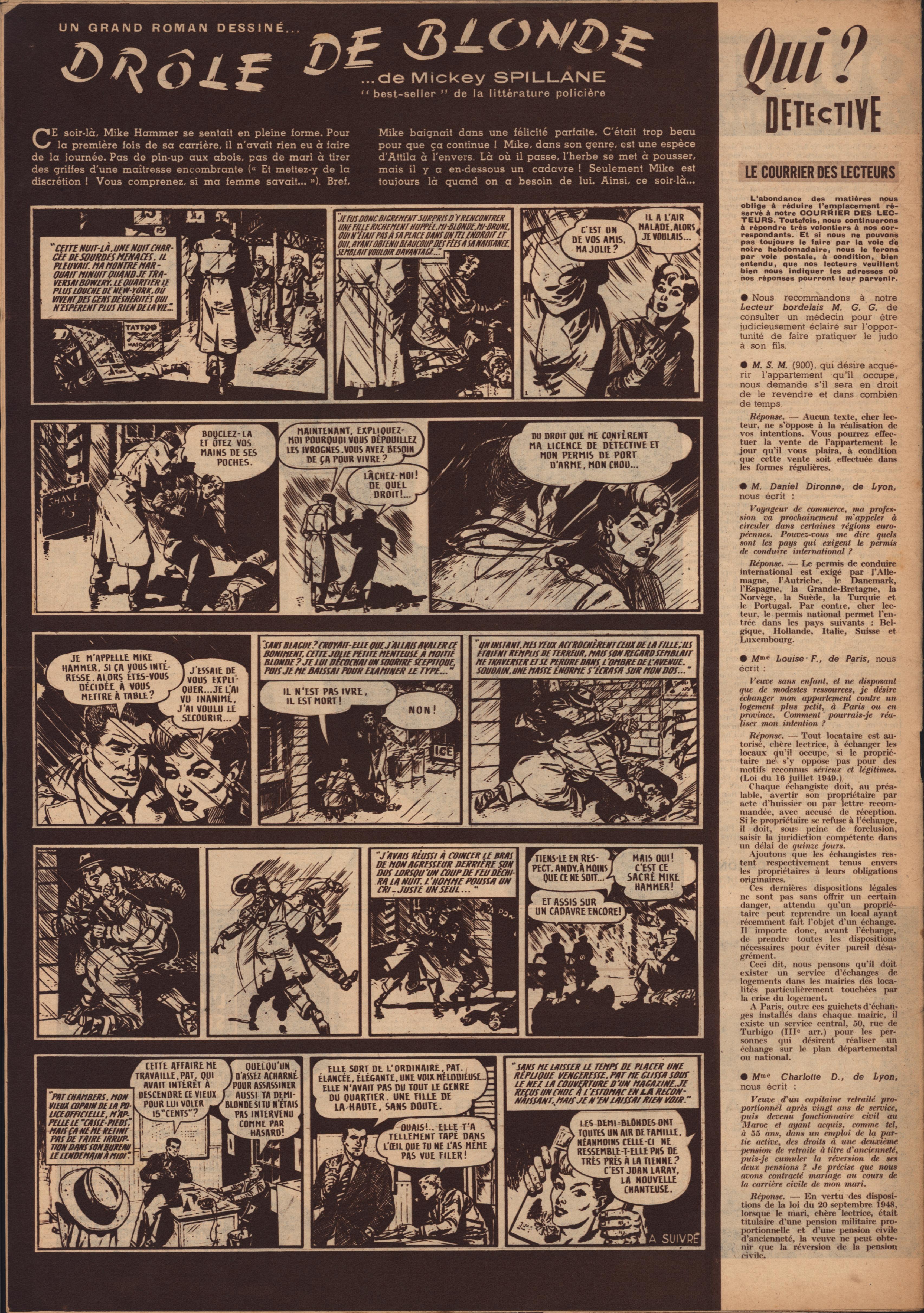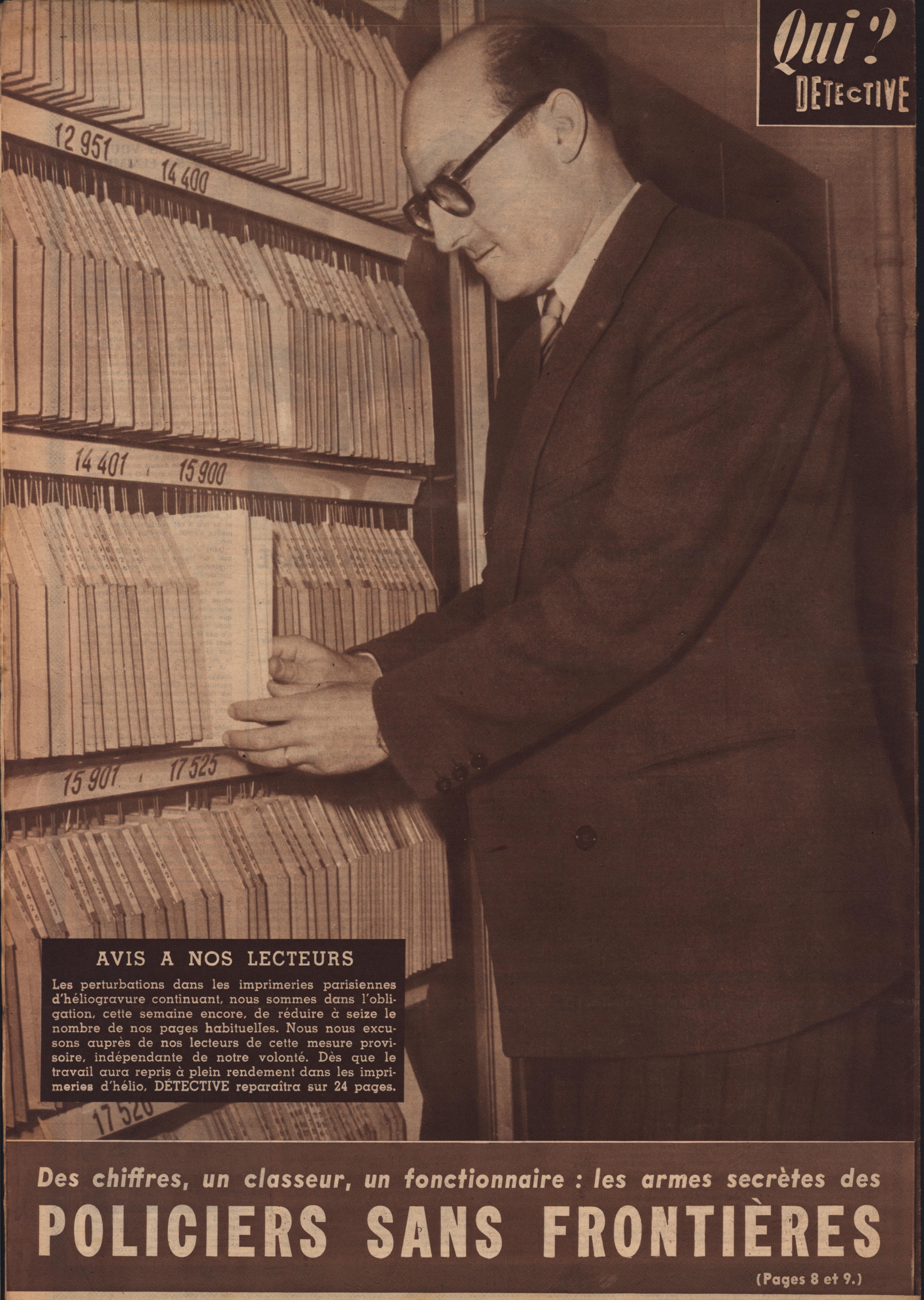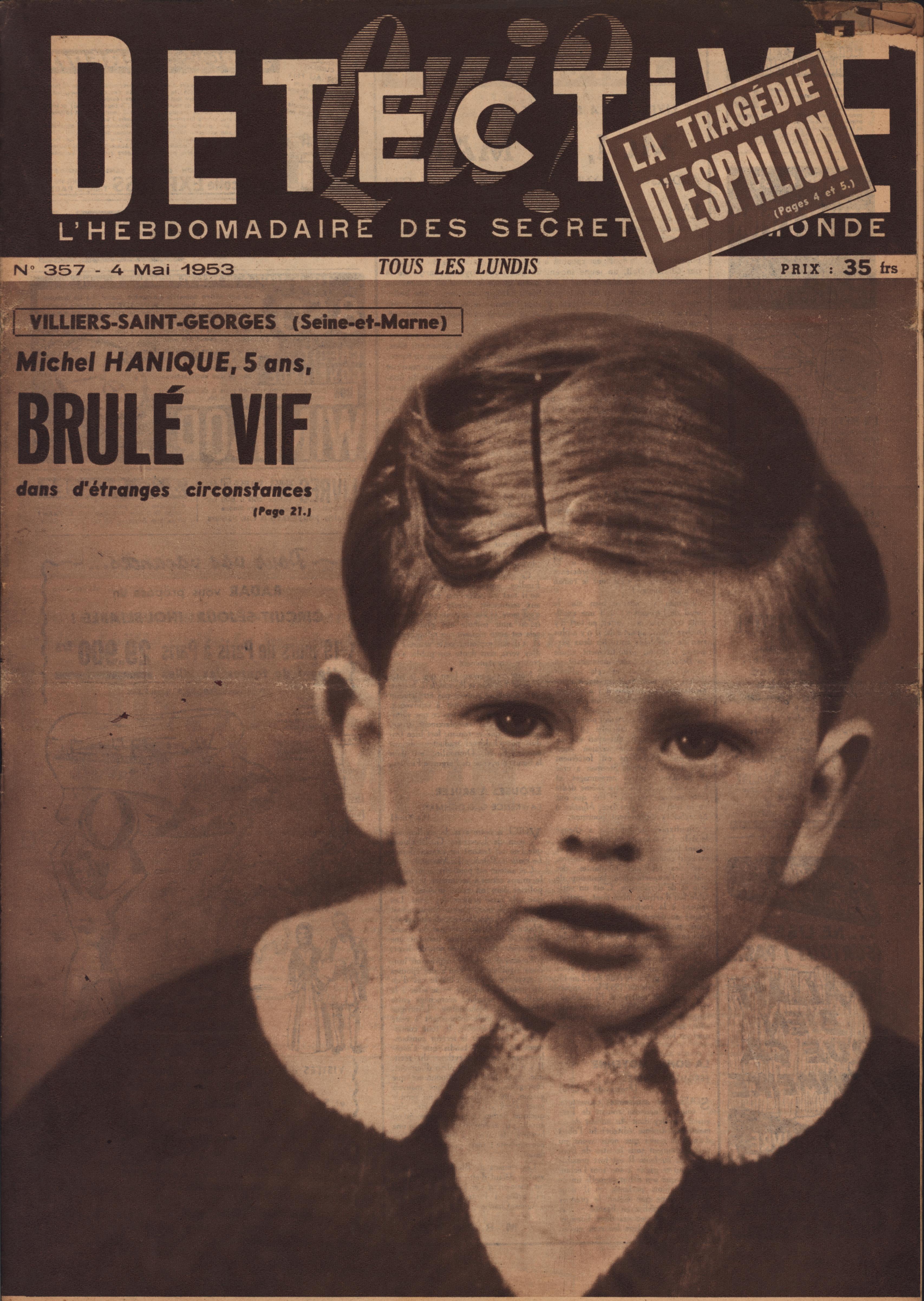 In 1946, rights to the title Détective were sold to the French Beyler group, who published it as Qui? Détective until 1958. In this and other galleries, we will present covers of the various incarnations of Détective as it changed title and style several times from the end of World War II until the present day. This gallery features issues of Qui? Détective from 1953, when it combined human interest stories, coverage of various royal families, articles on sport and, of course, reports on crimes of all kinds. We have also included a one-page report from the March 2nd issue on the appeal for a pardon on the part of Violette Nozière, convicted of murder in the 1930s in one of the most high-profile cases in French history.