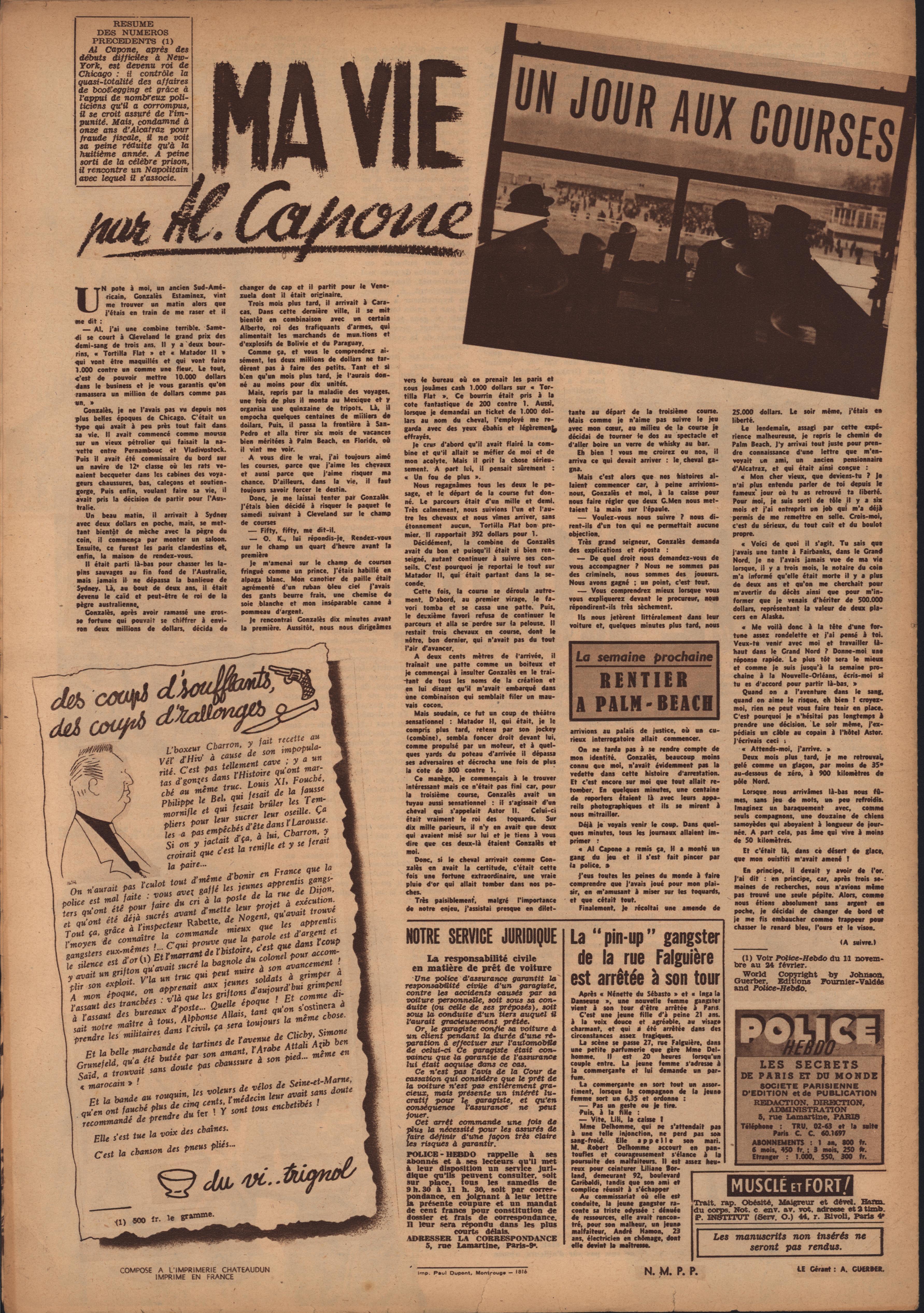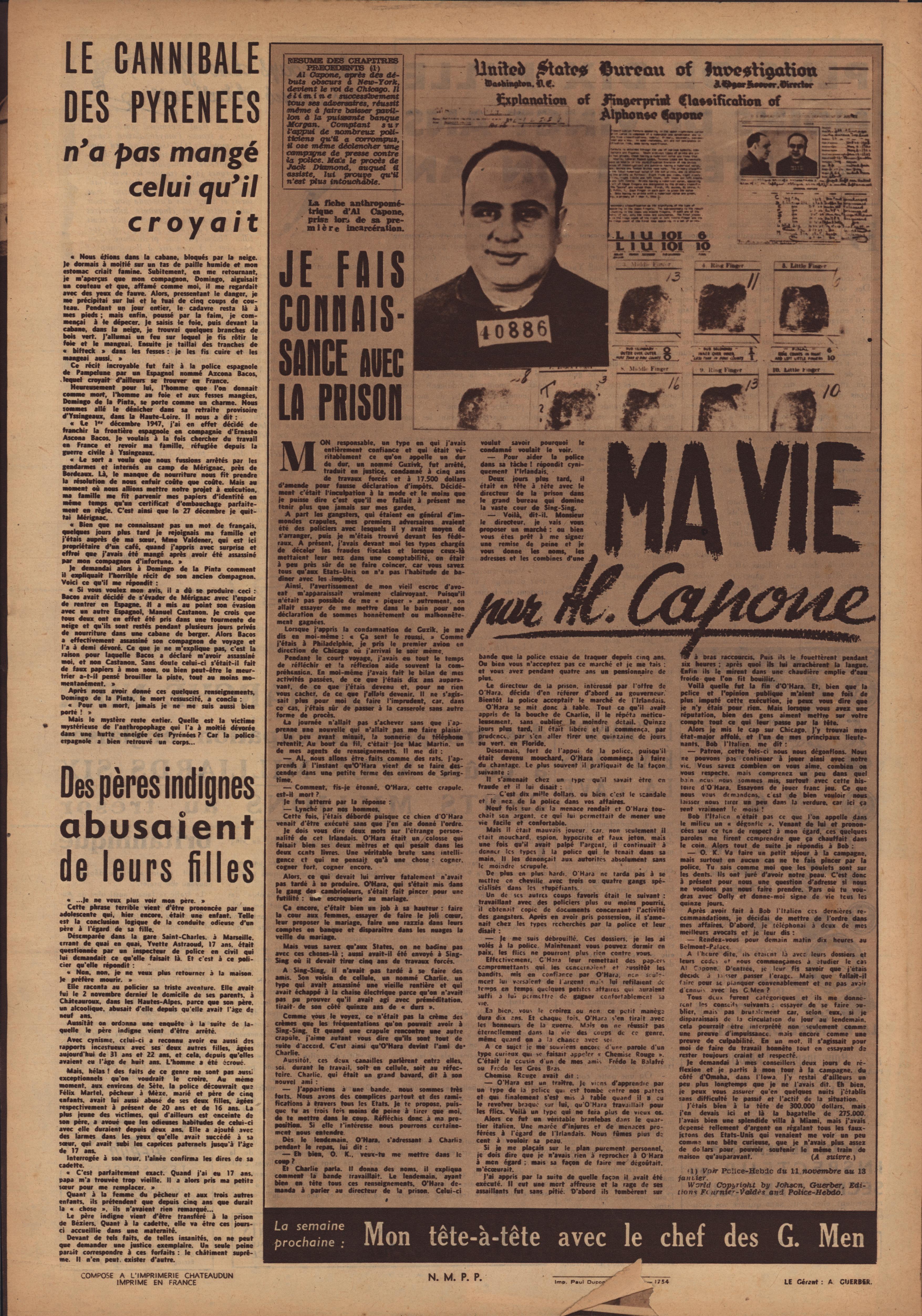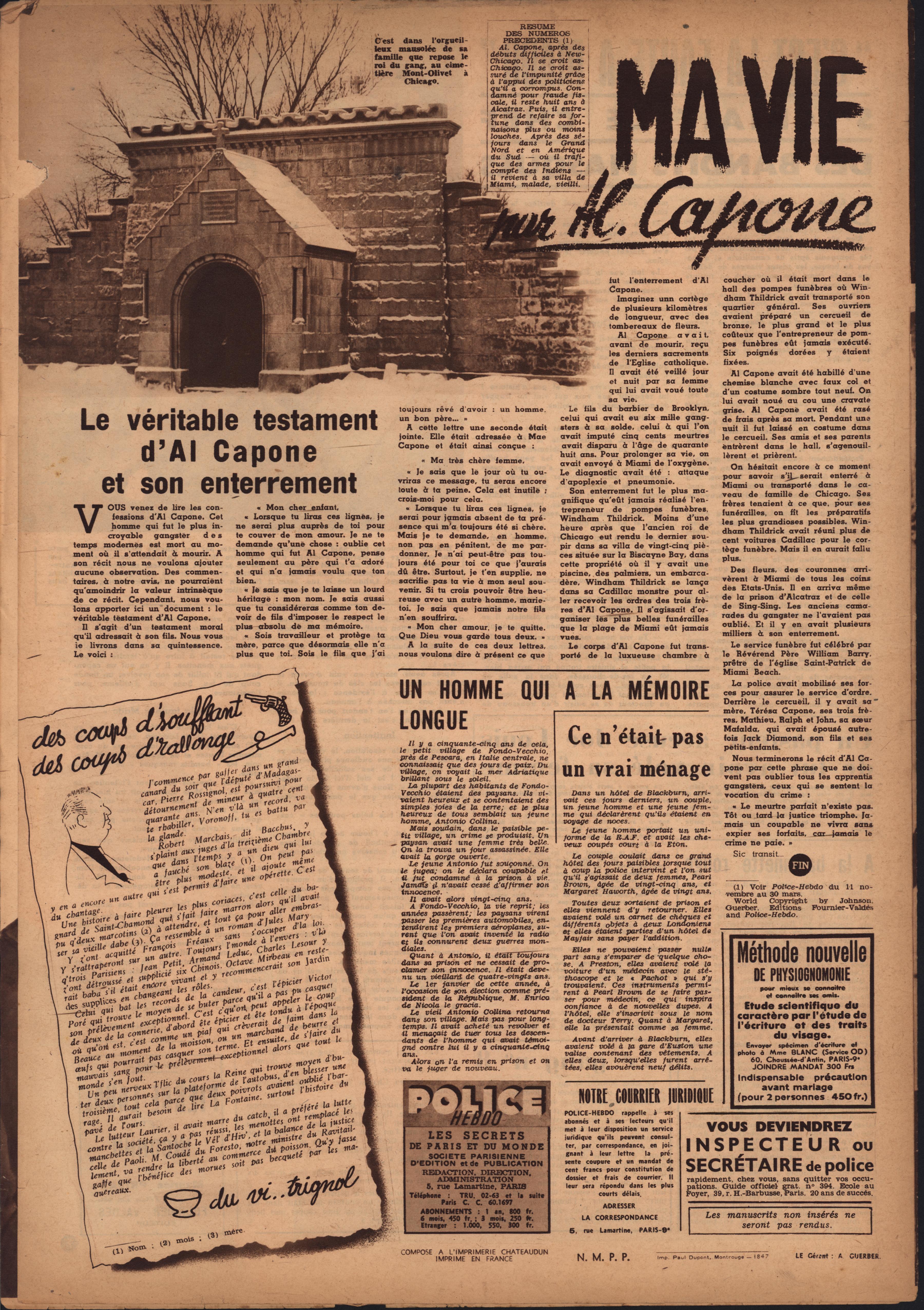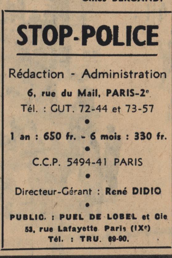 In the immediate post-war period, while Qui? Détective continued the legacy of the pre-war Détective, albeit under new ownership, other crime-oriented papers emerged in France, most of them short-lived. Here we see issues of Stop Police, published in 1946-1947, Enquêtes: le grand hebdomadaire policier, from 1947 and Police Hebdo. According to the BIBLIOGRAPHIE DE L’HISTOIRE DE LA JUSTICE FRANÇAISE (1789-2011) on the Criminocorpus site, Police Hebdo was published only in 1947 and 1948. It was roughly the same size and format as the post-war Qui? Détective.