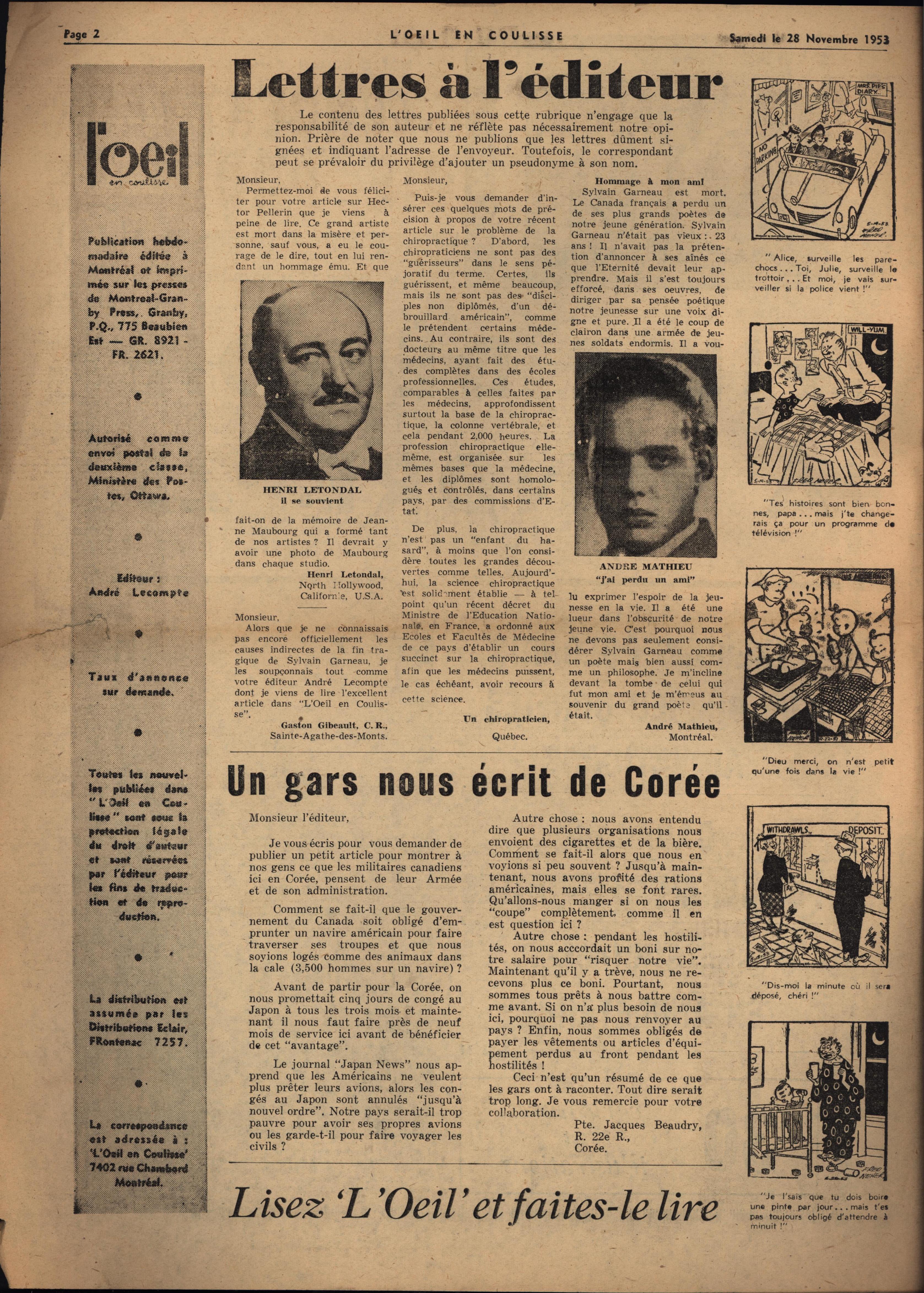 L’Oeil en coulisse 1953 11 28 colophon