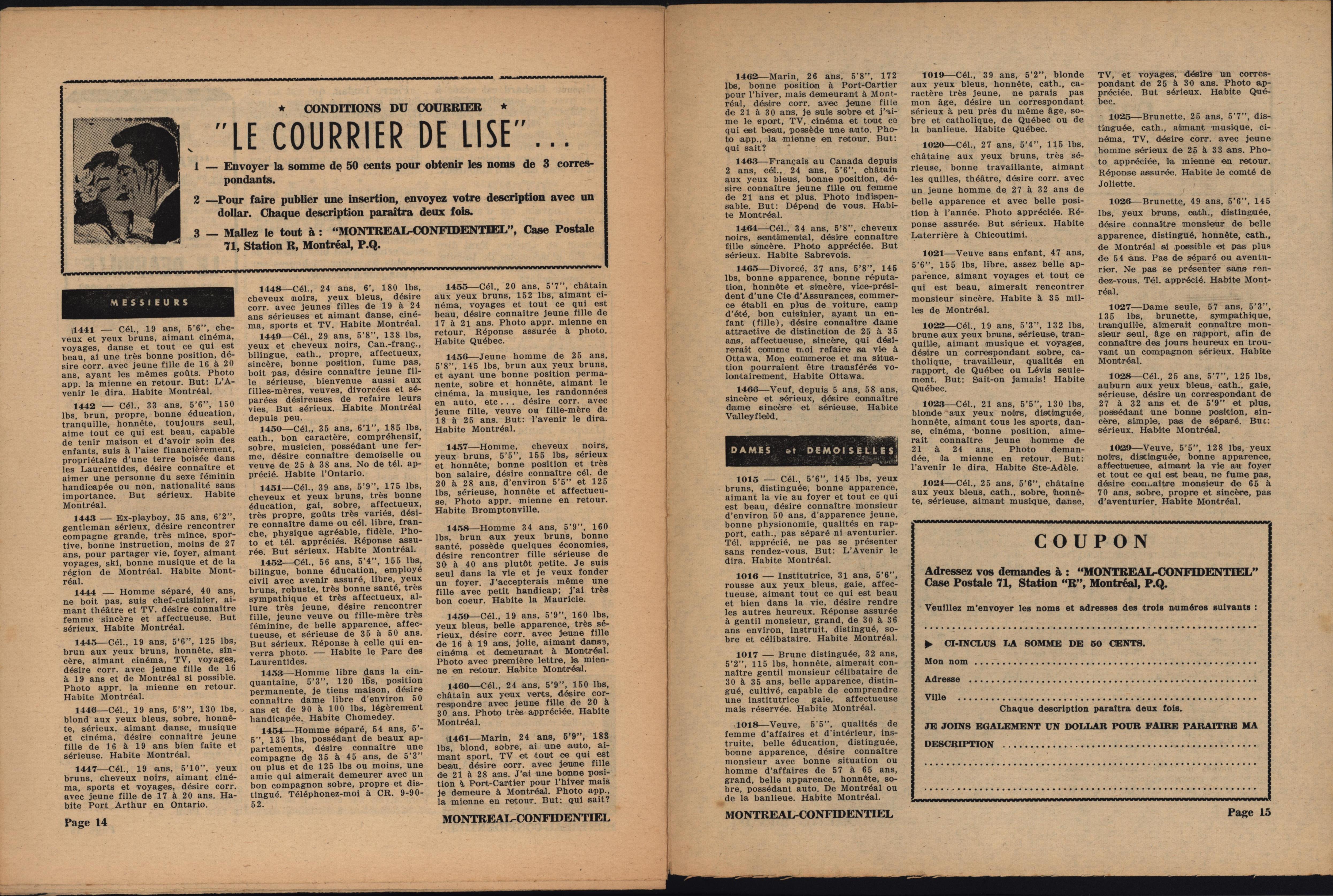 Montréal Confidentiel 1963 01 12 personals