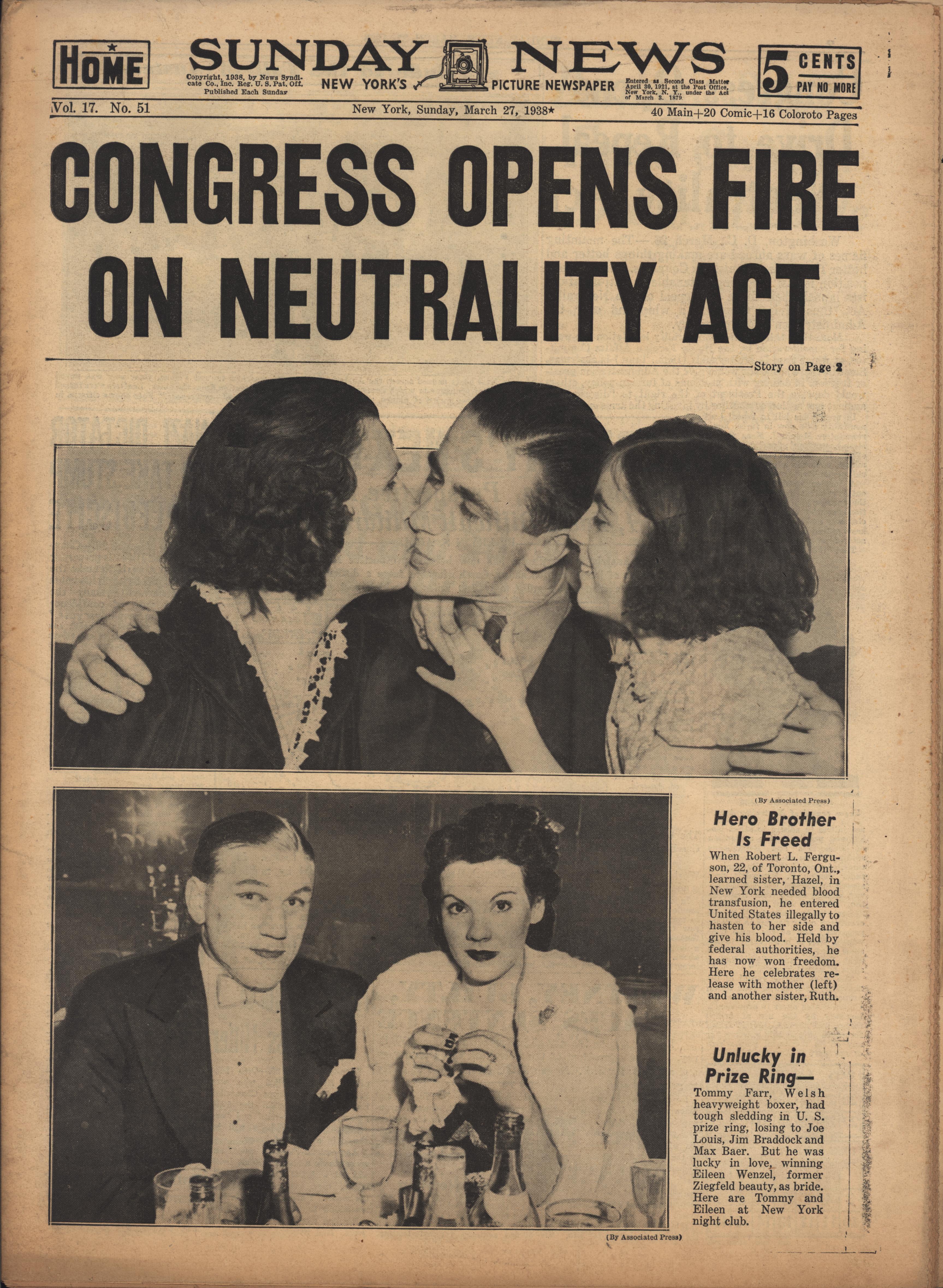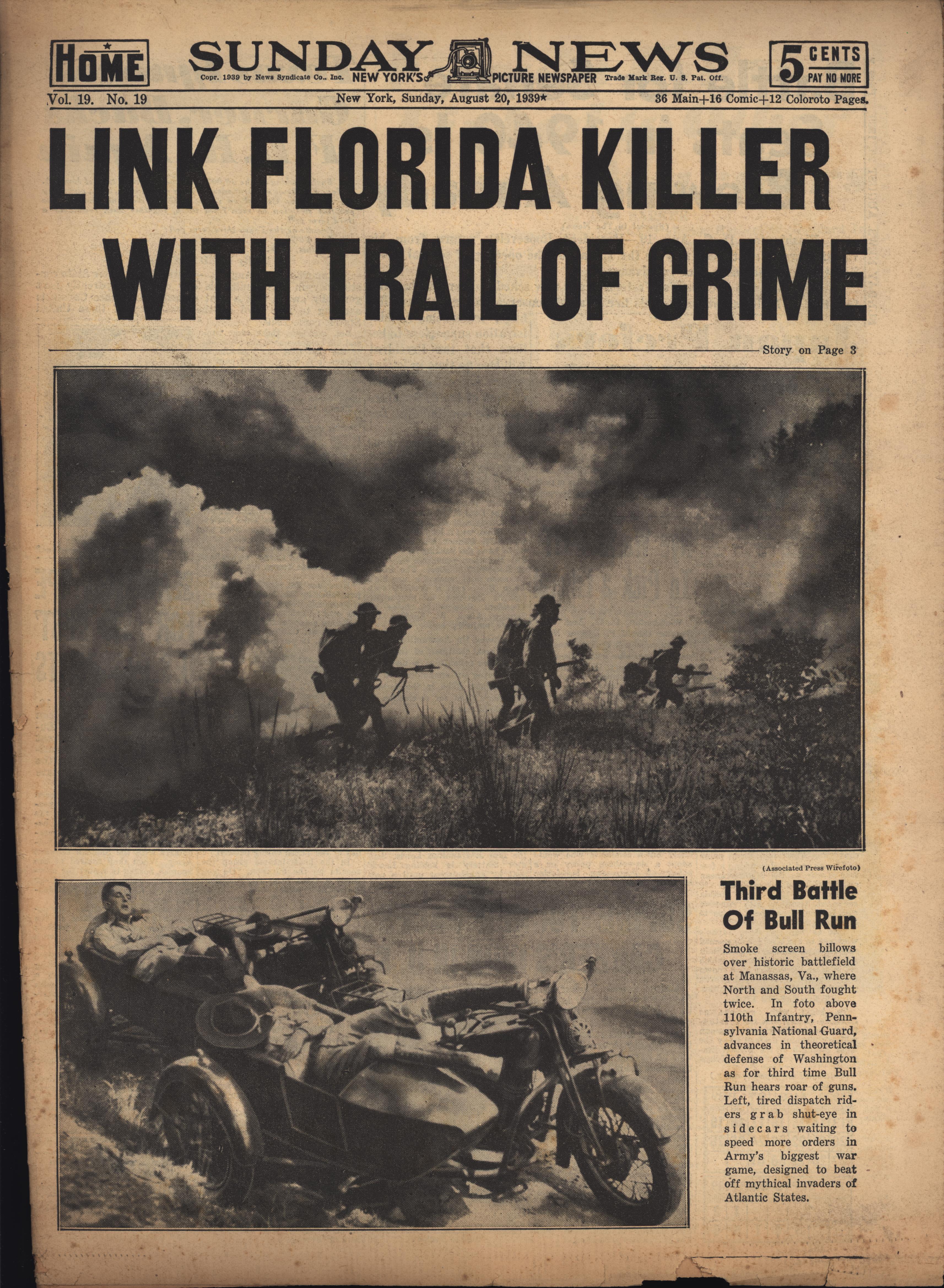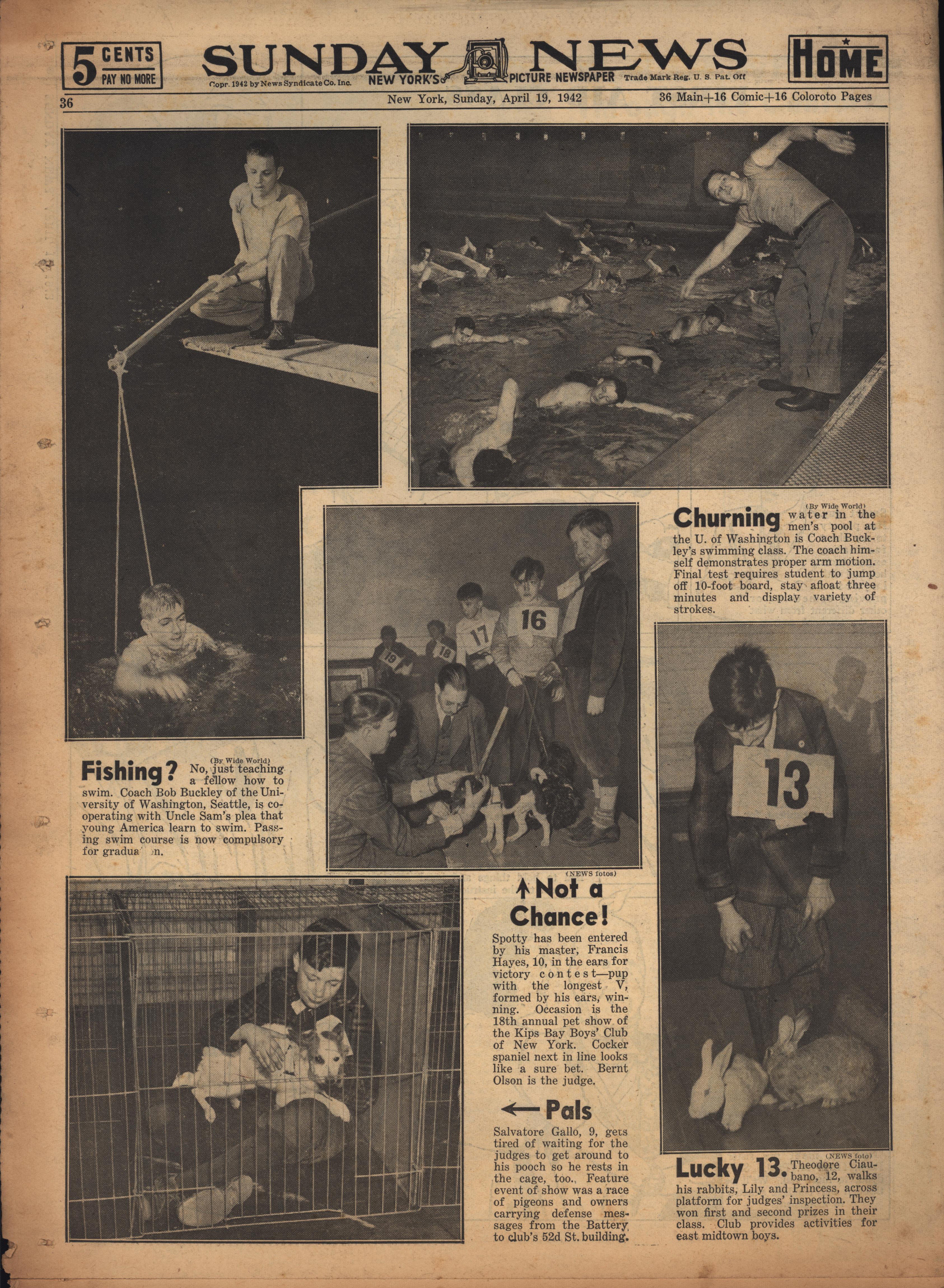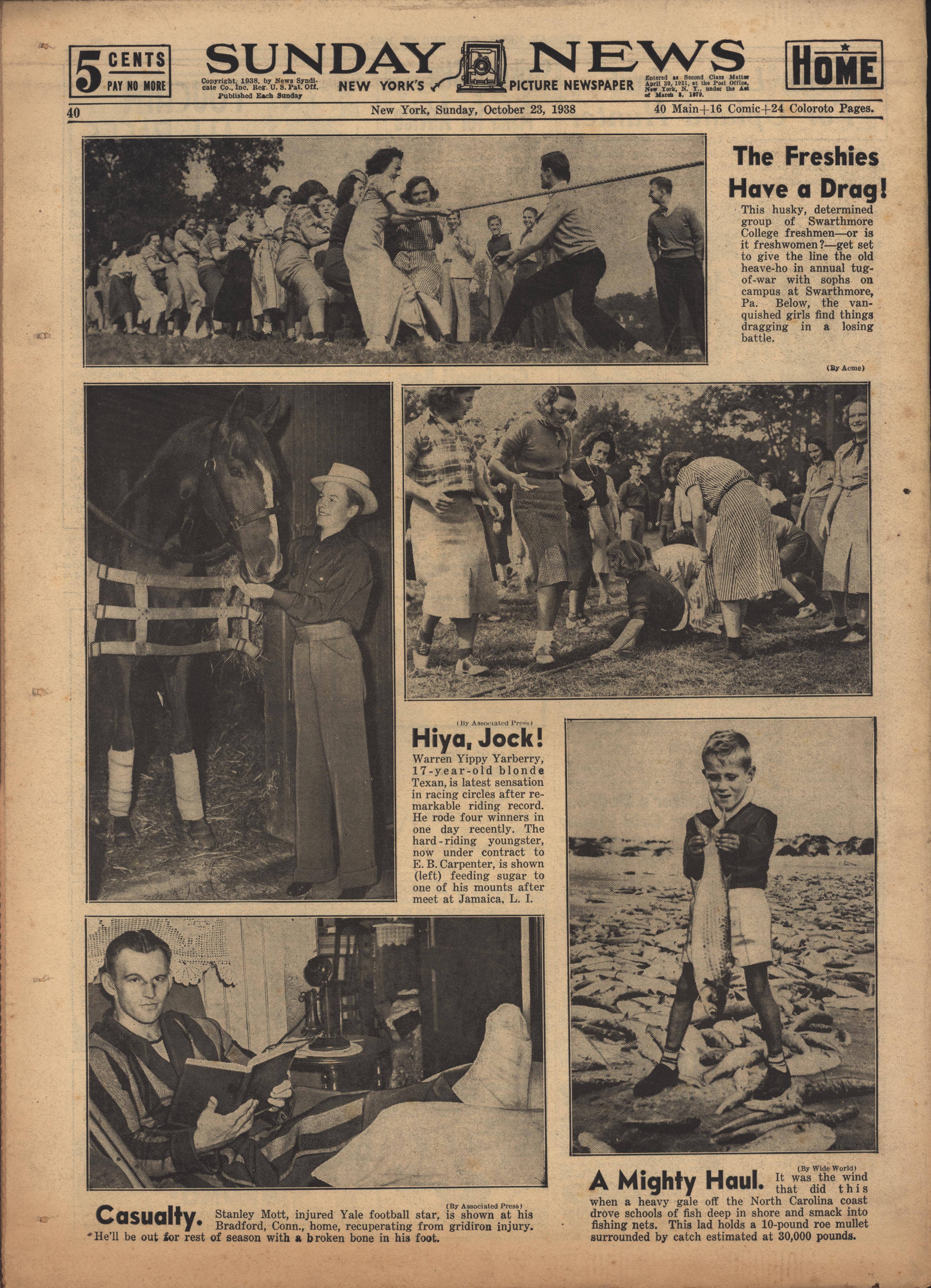 The New York Sunday News was the Sunday edition of the New York Daily News, which began publication 1919 and continues through the present day. Throughout much of its life, it was known as “New York’s Picture Newspaper”. This small gallery of issues from the late 1930s and early 1940s is intended to show the typical layout of the newspaper’s front and back covers. Headlines often had nothing to do with the photographs, which referred to stories inside. The back covers are at the end of this gallery.