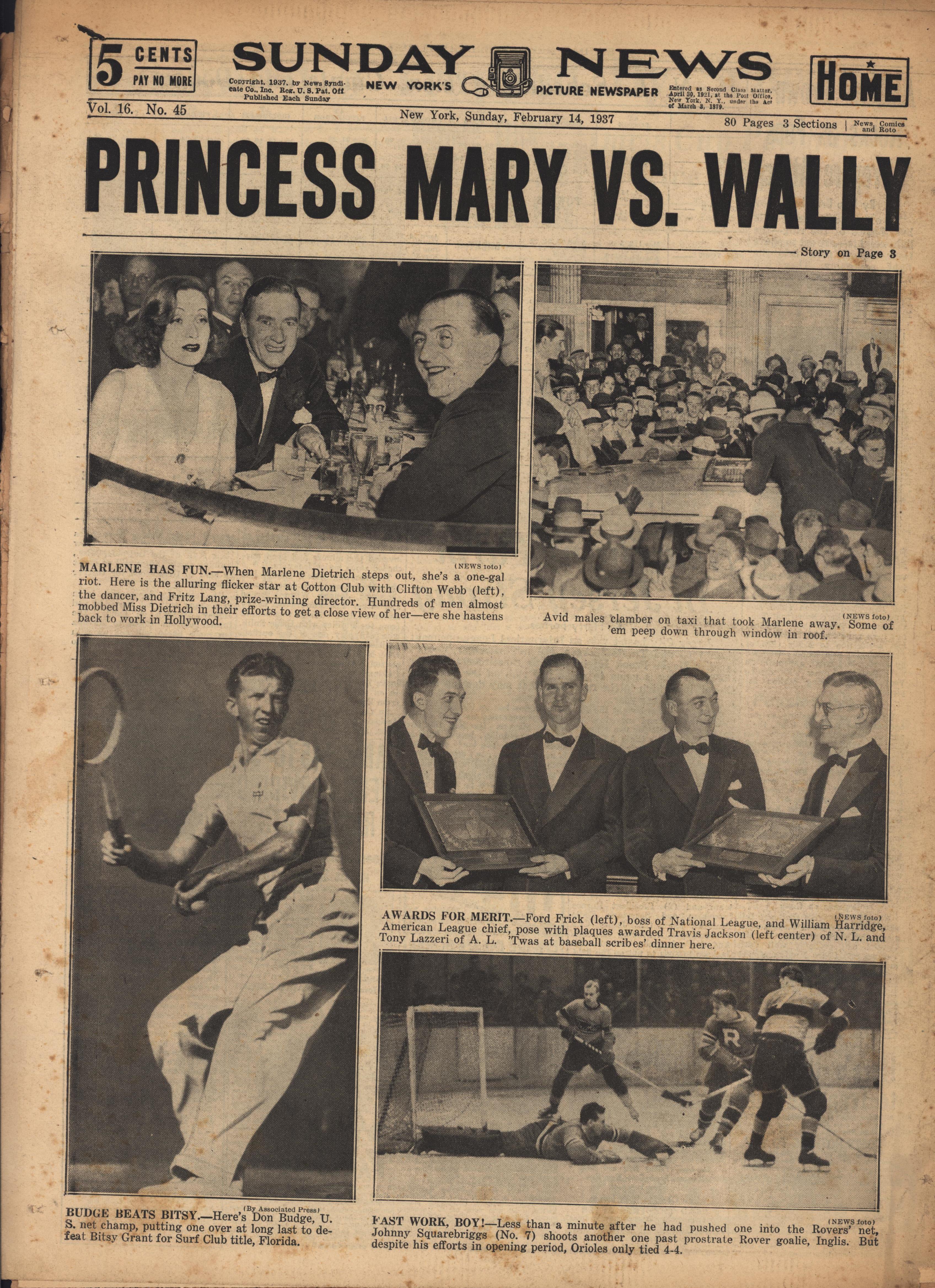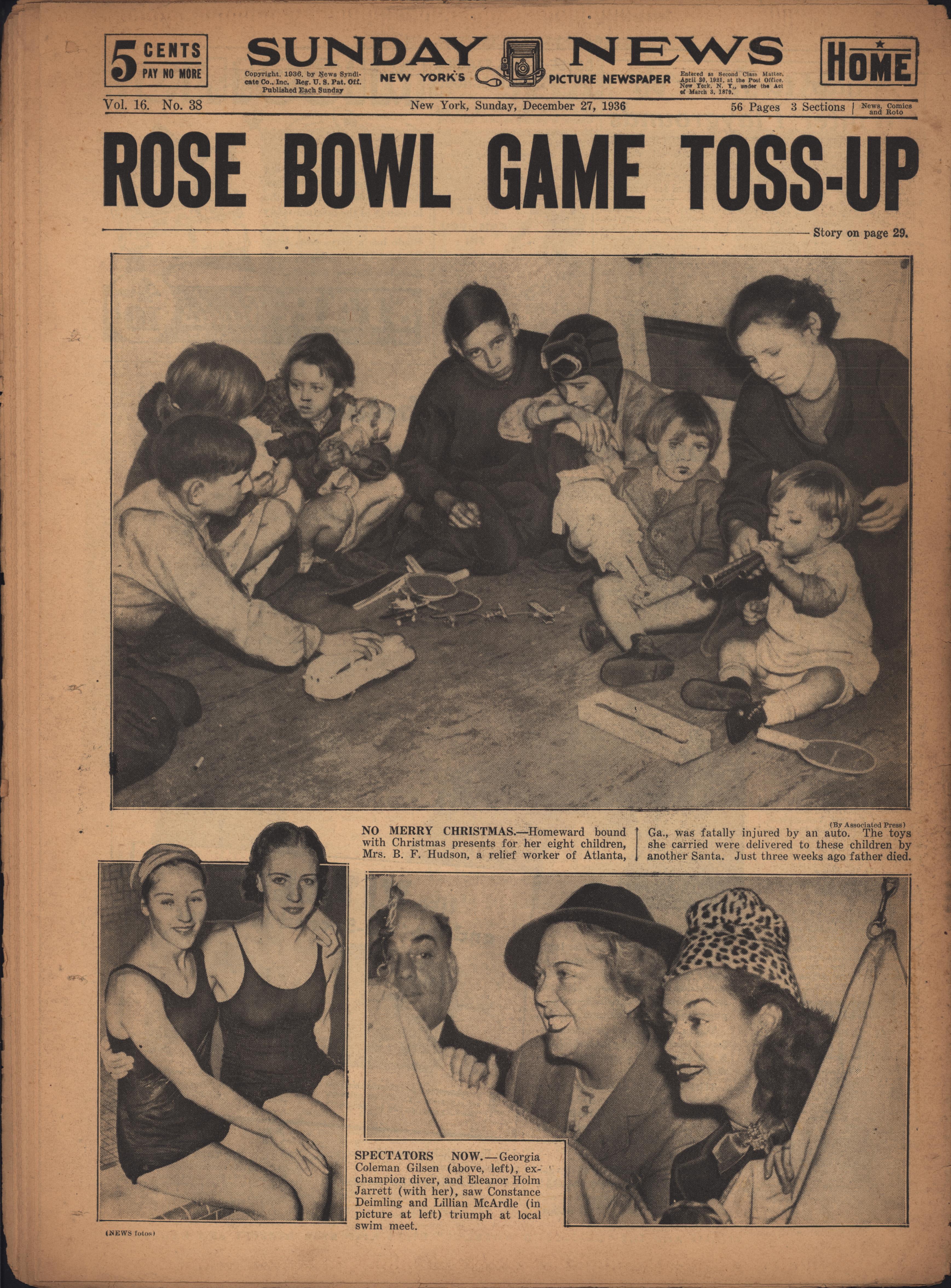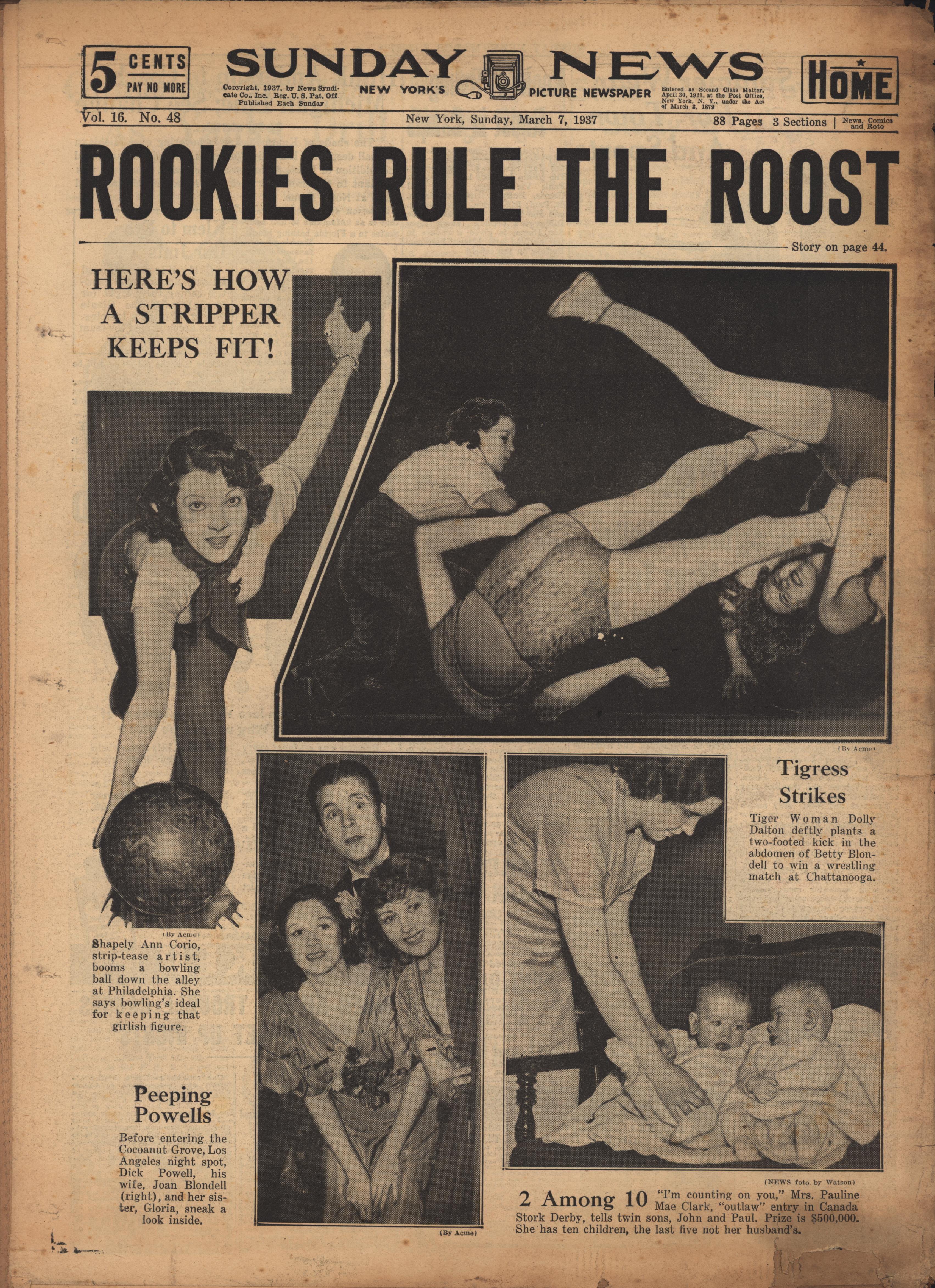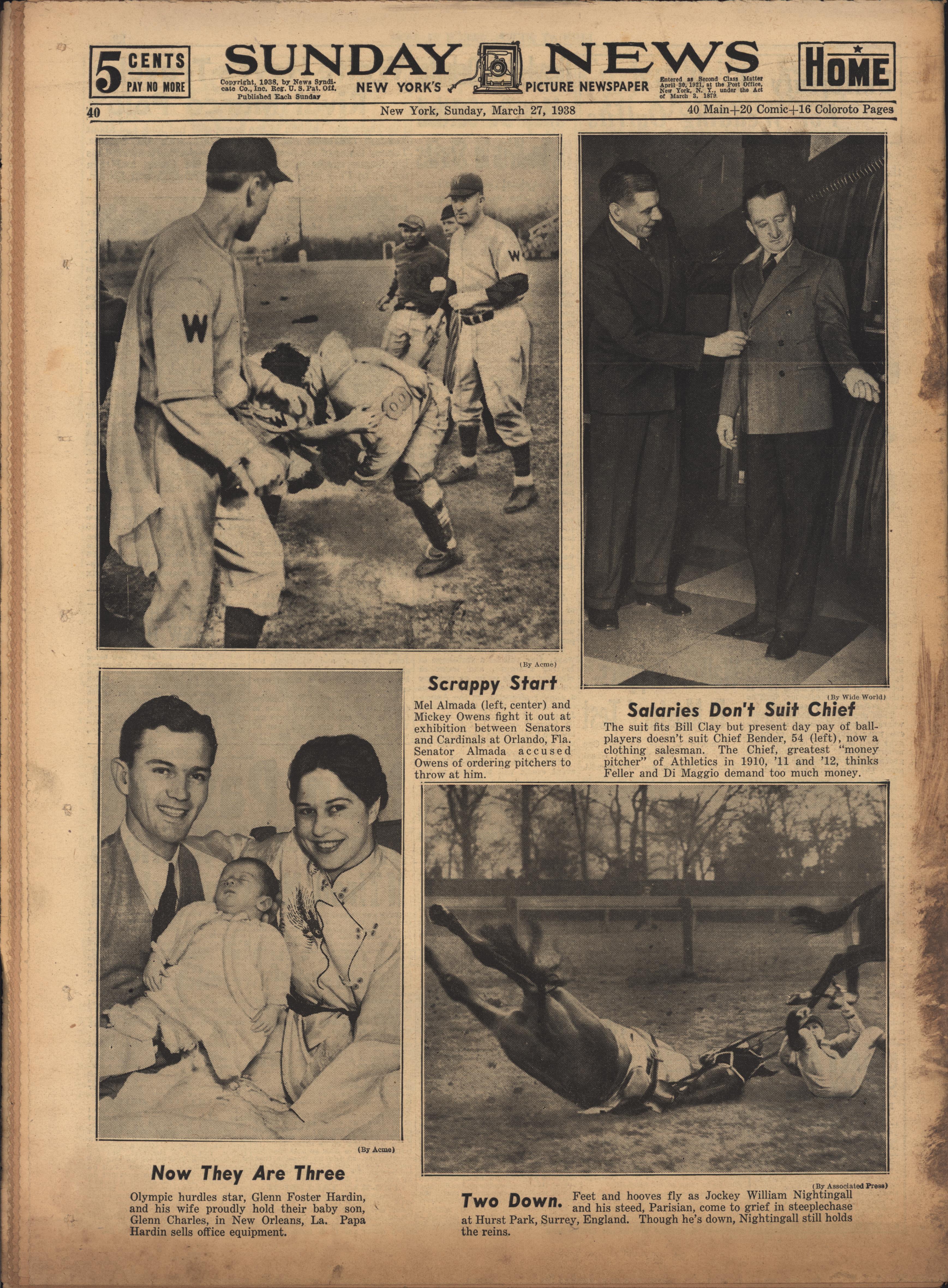 The New York Sunday News was the Sunday edition of the New York Daily News, which began publication 1919 and continues through the present day. Throughout much of its life, it was known as “New York’s Picture Newspaper”. This small gallery of issues from the late 1930s and early 1940s is intended to show the typical layout of the newspaper’s front and back covers. Headlines often had nothing to do with the photographs, which referred to stories inside. The back covers are at the end of this gallery.