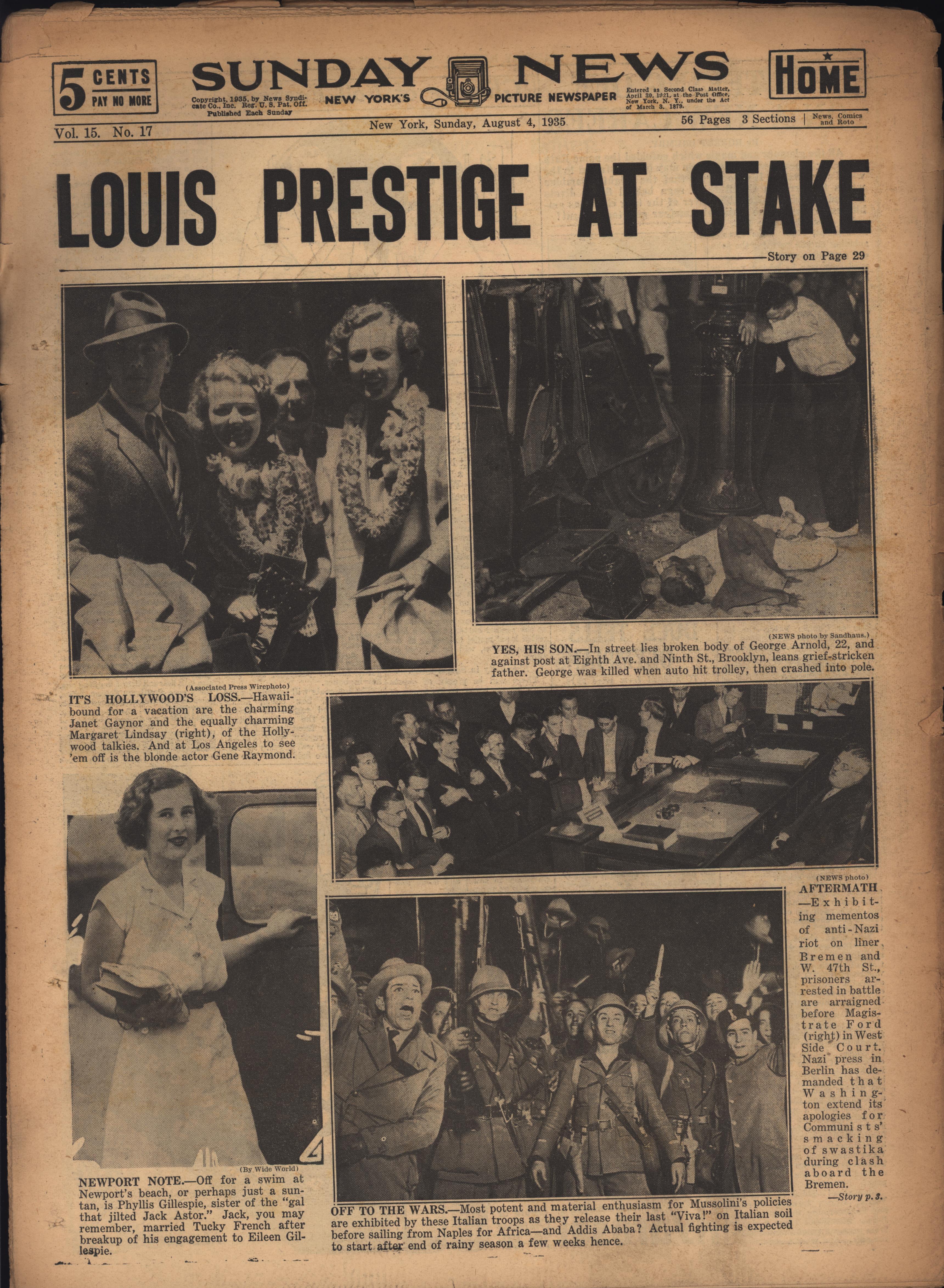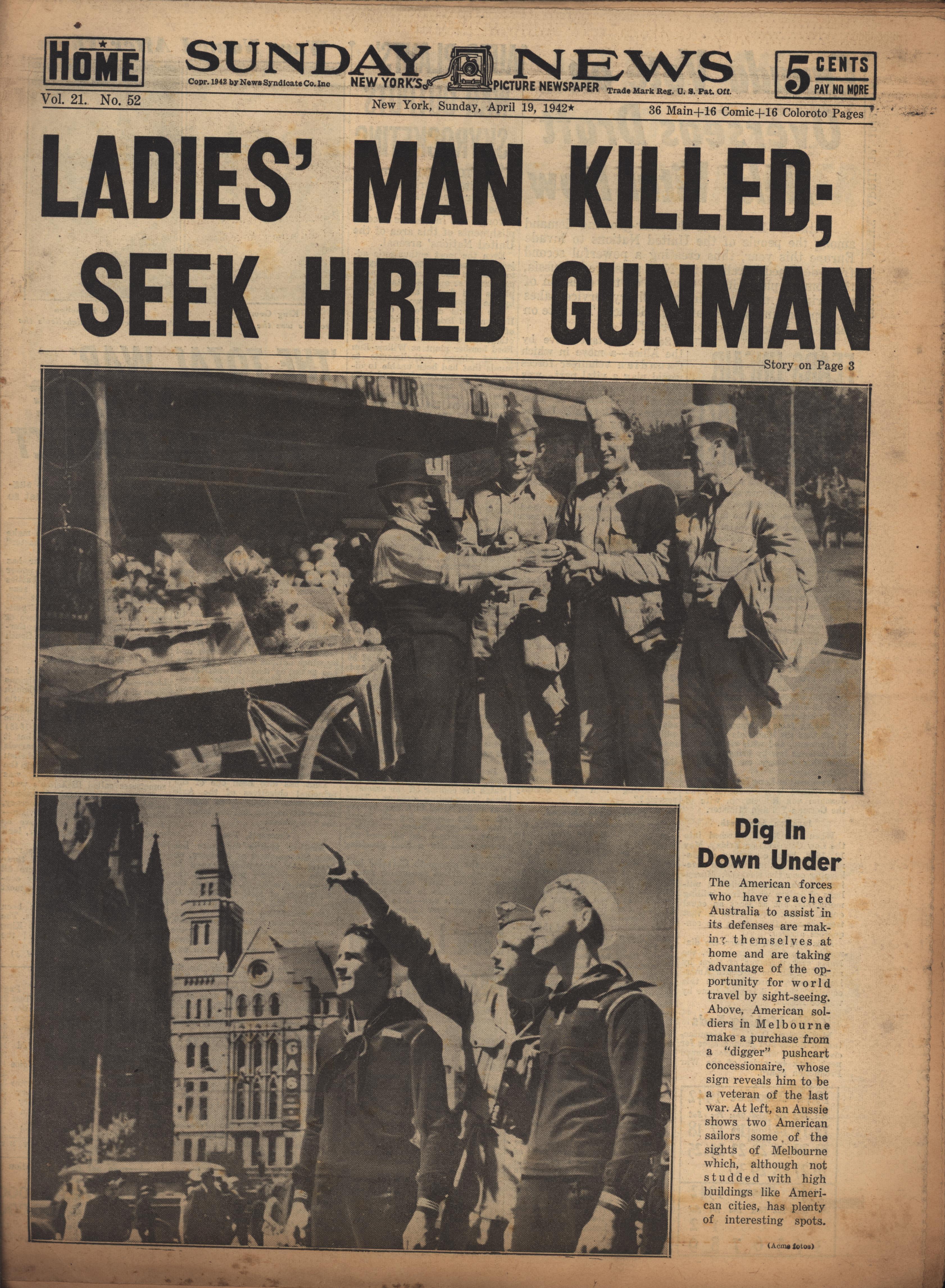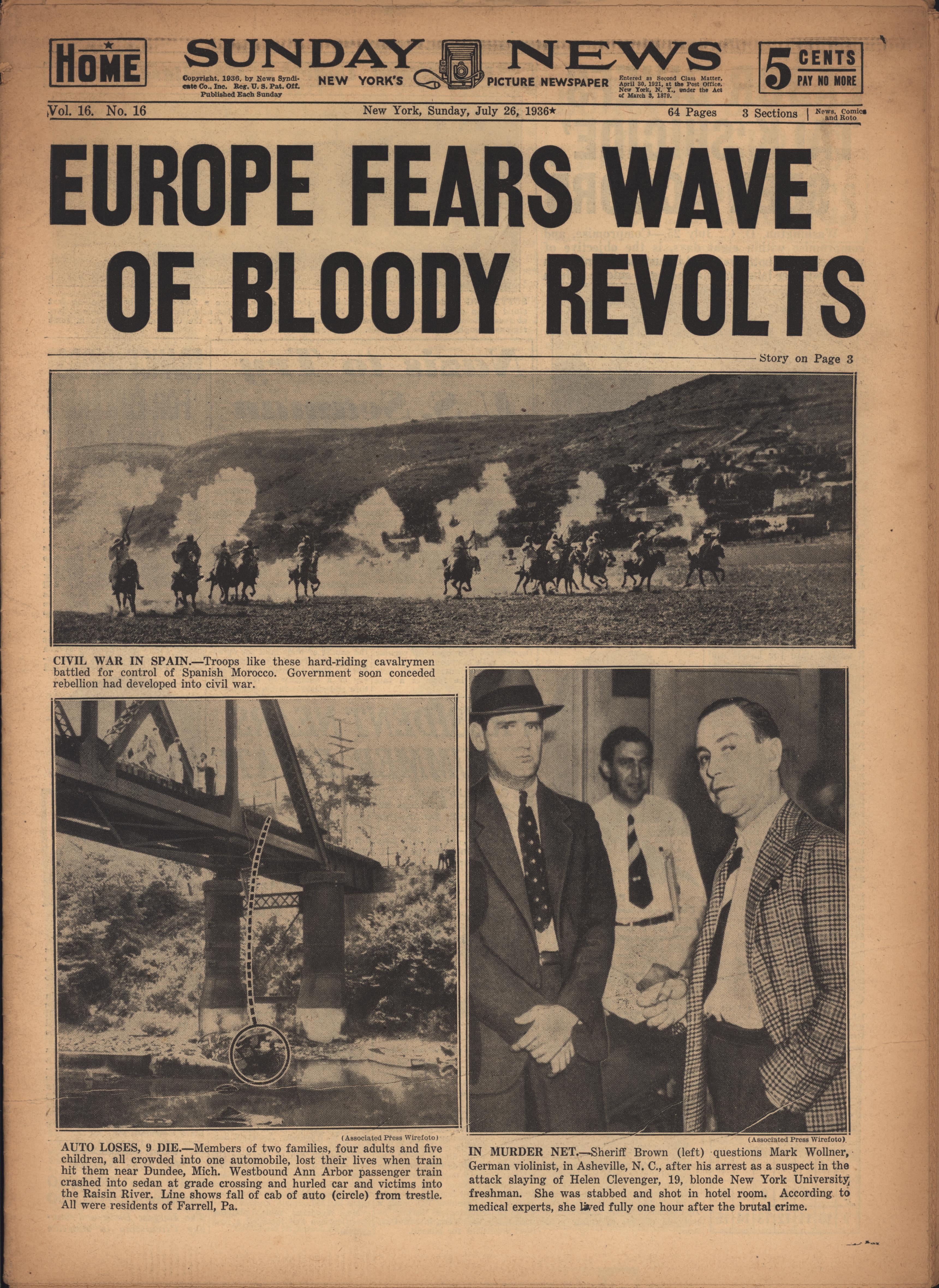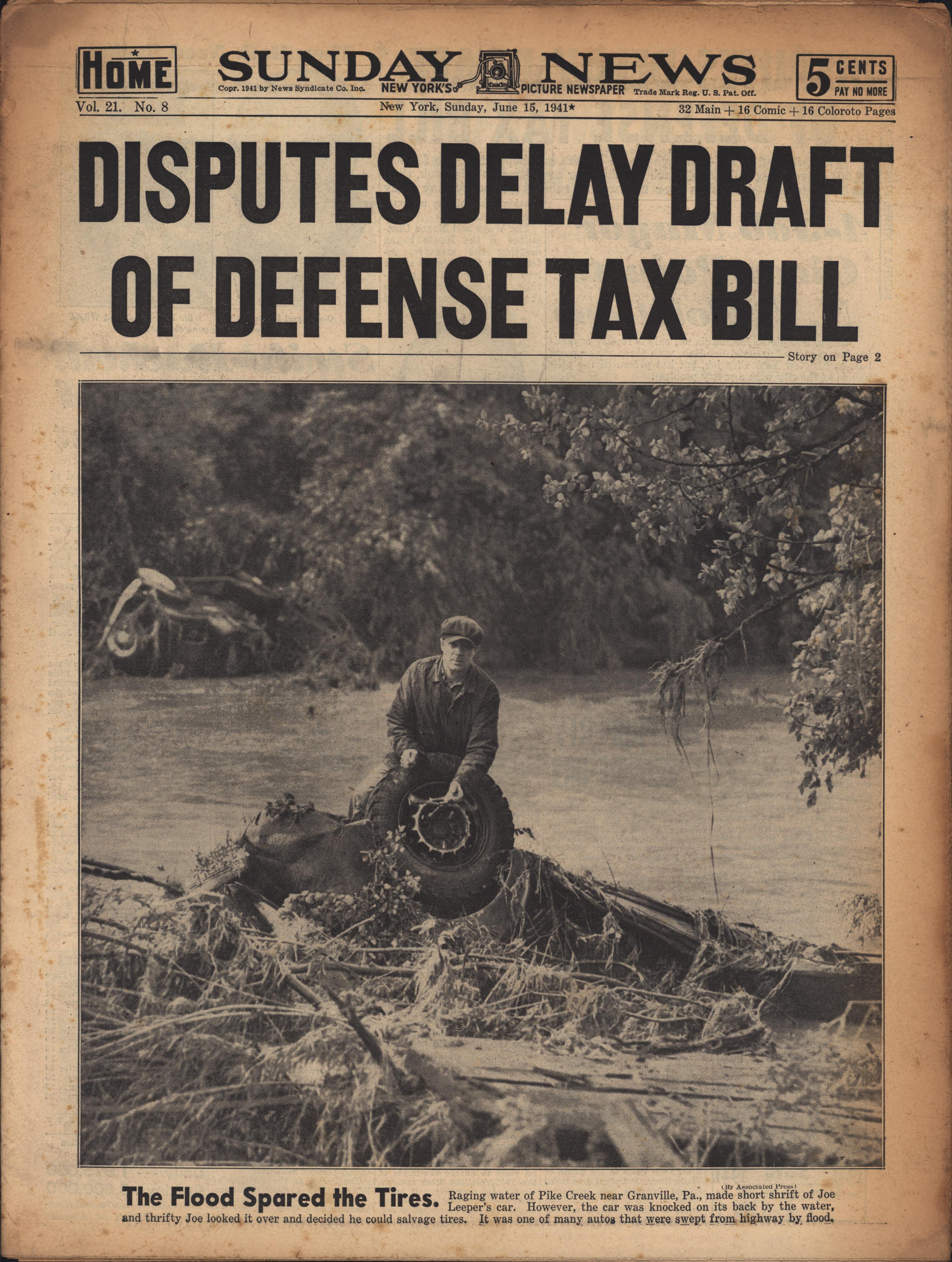 The New York Sunday News was the Sunday edition of the New York Daily News, which began publication 1919 and continues through the present day. Throughout much of its life, it was known as “New York’s Picture Newspaper”. This small gallery of issues from the late 1930s and early 1940s is intended to show the typical layout of the newspaper’s front and back covers. Headlines often had nothing to do with the photographs, which referred to stories inside. The back covers are at the end of this gallery.